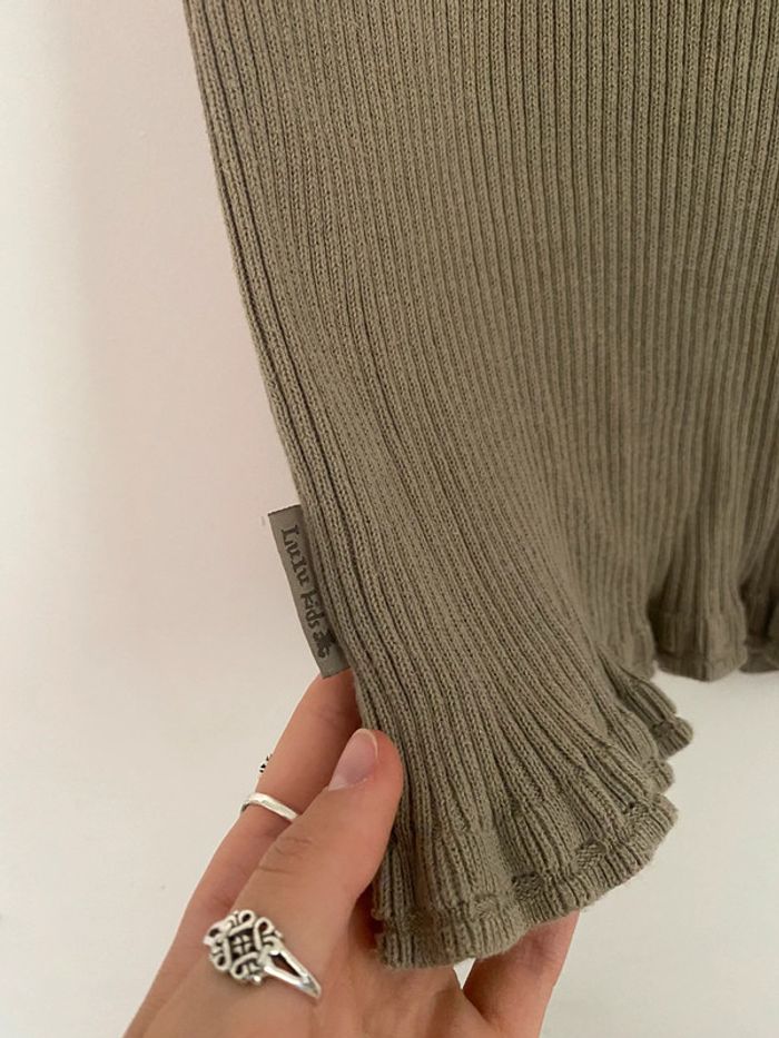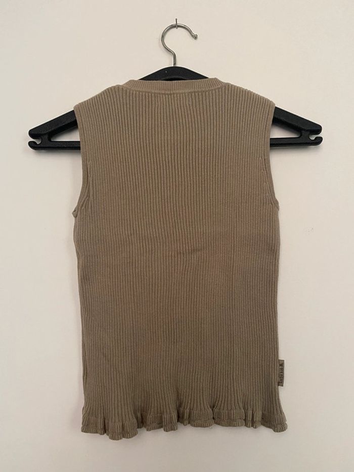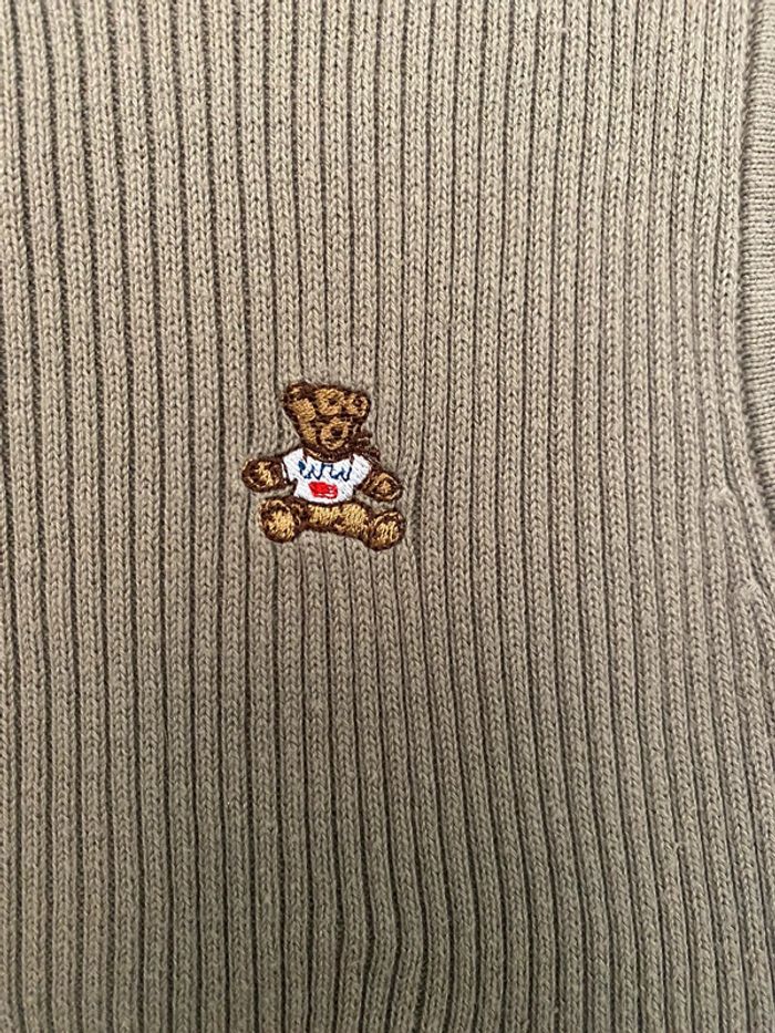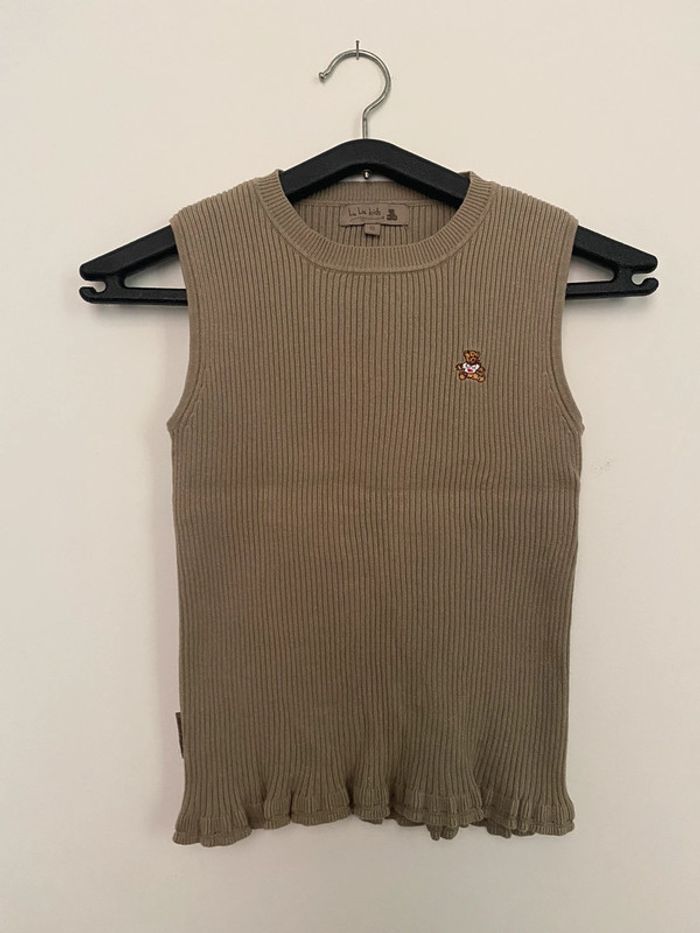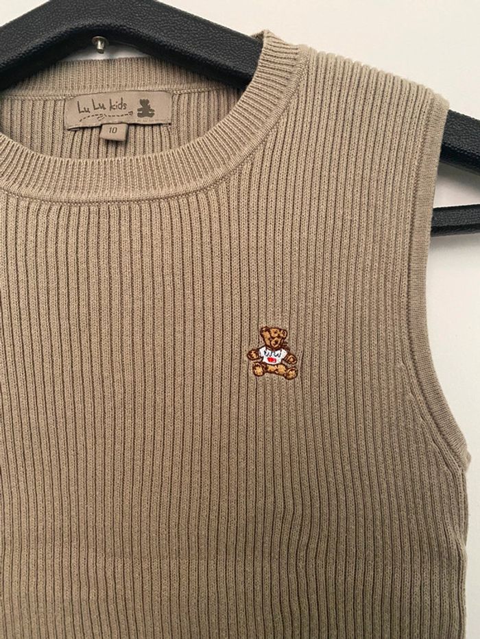 Haut débardeur pull sans manches Lulu Castagnette Kids taille 10 ans mixte Convient aussi à un XS, layering, sur chemise, dentelé ondulé, ours brodé broderie 100% coton très confortable beige marron camel