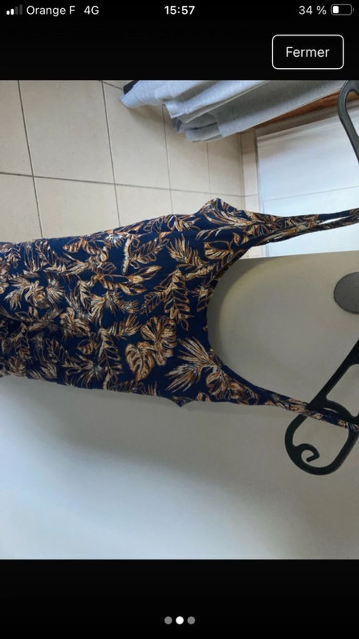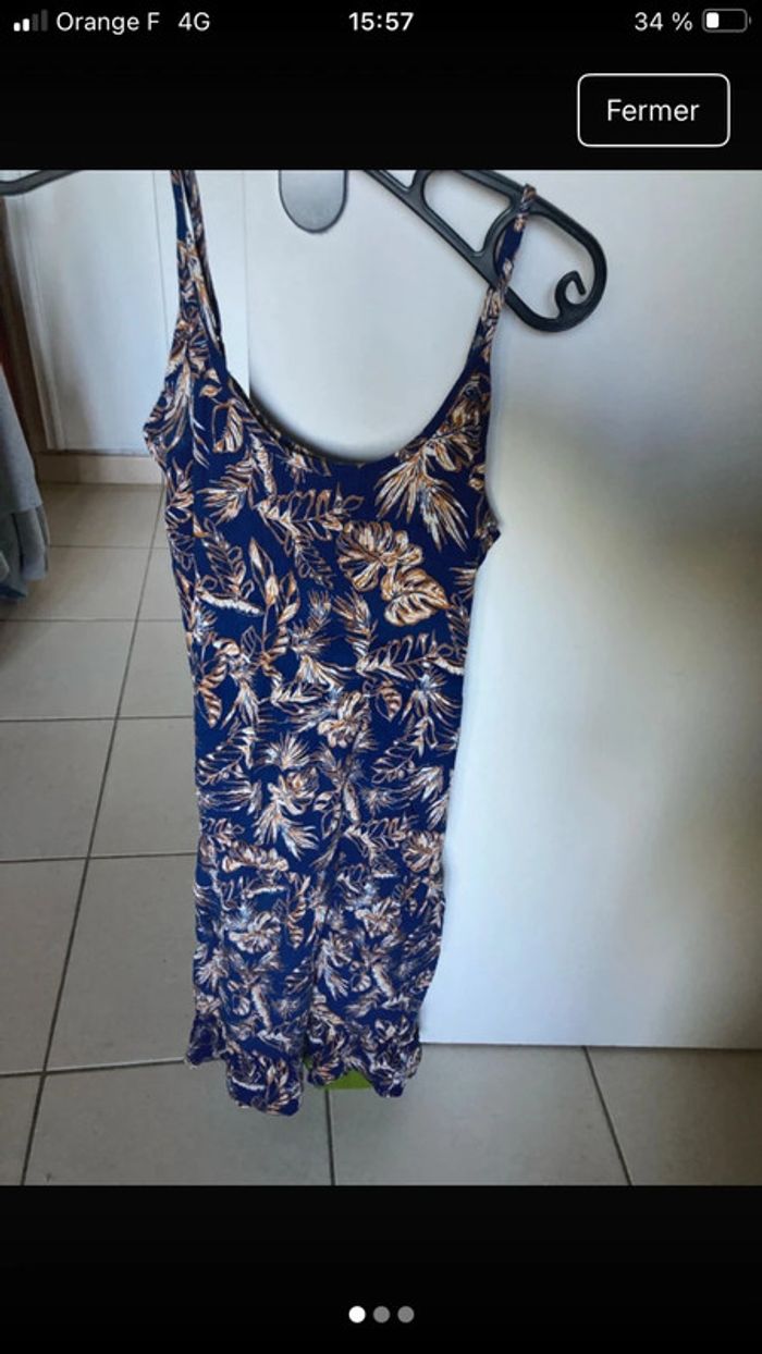 Robe à bretelles femme taille 36 Robe bleue imprimée motifs feuilles achetée chez Primark Robe en très bon état