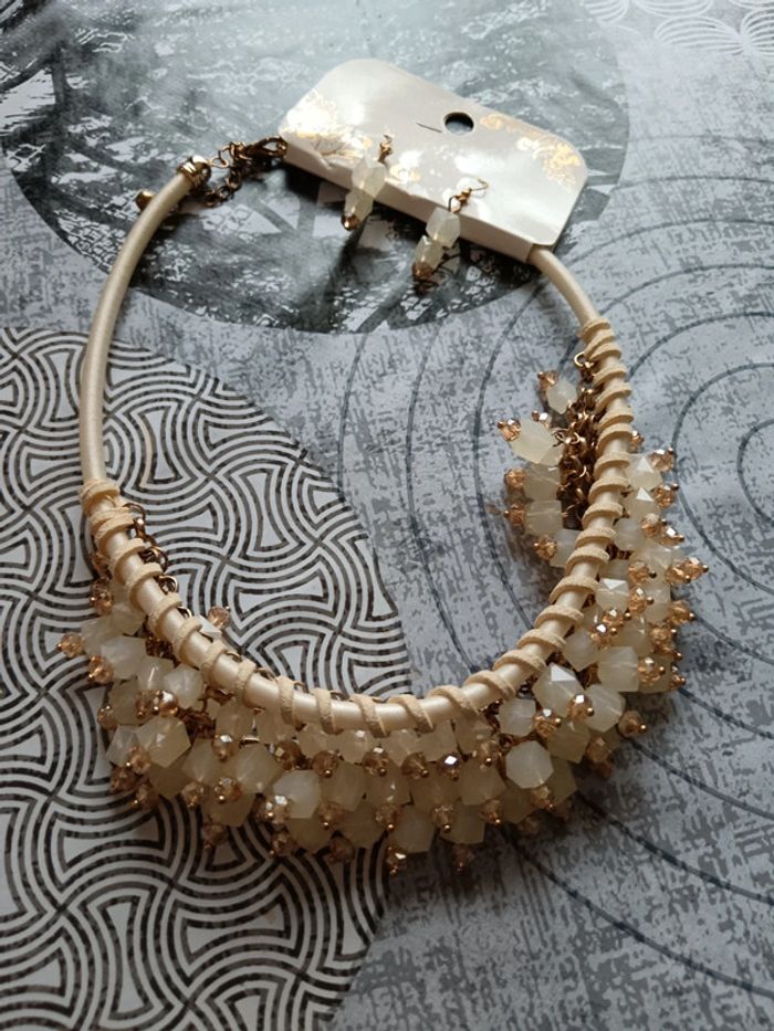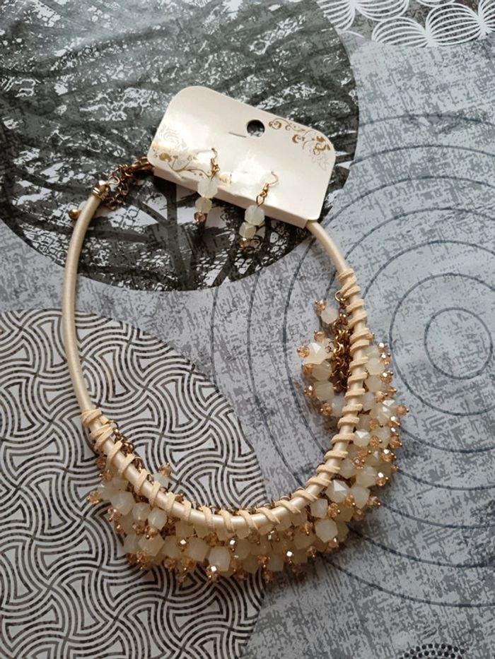 Ensemble de bijoux Collier et boucle d oreillle Ton crème #bijouxdomi045