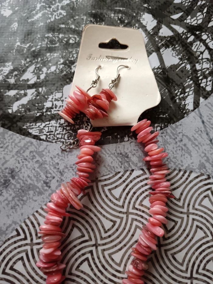 Ensemble Collier et boucle d oreille Rose/fushia #bijouxdomi045