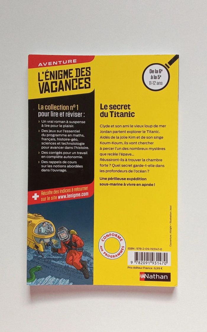 Je vends le livre L'énigme des vacances 6ème/5ème : Le secret du Titanic Coins légèrement abîmés