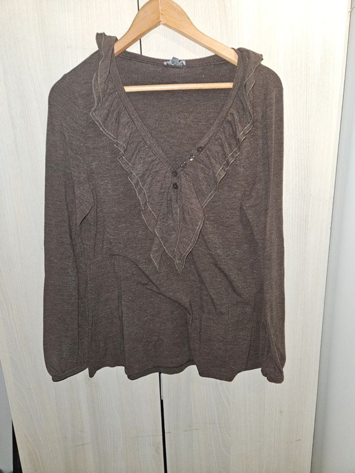 Haut marron manche longue col V en bon état. Taille 46 / 48. Clara vitti. #carolinevoltesfemme46 #carolinevoltesfemme48