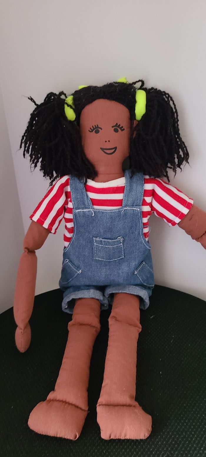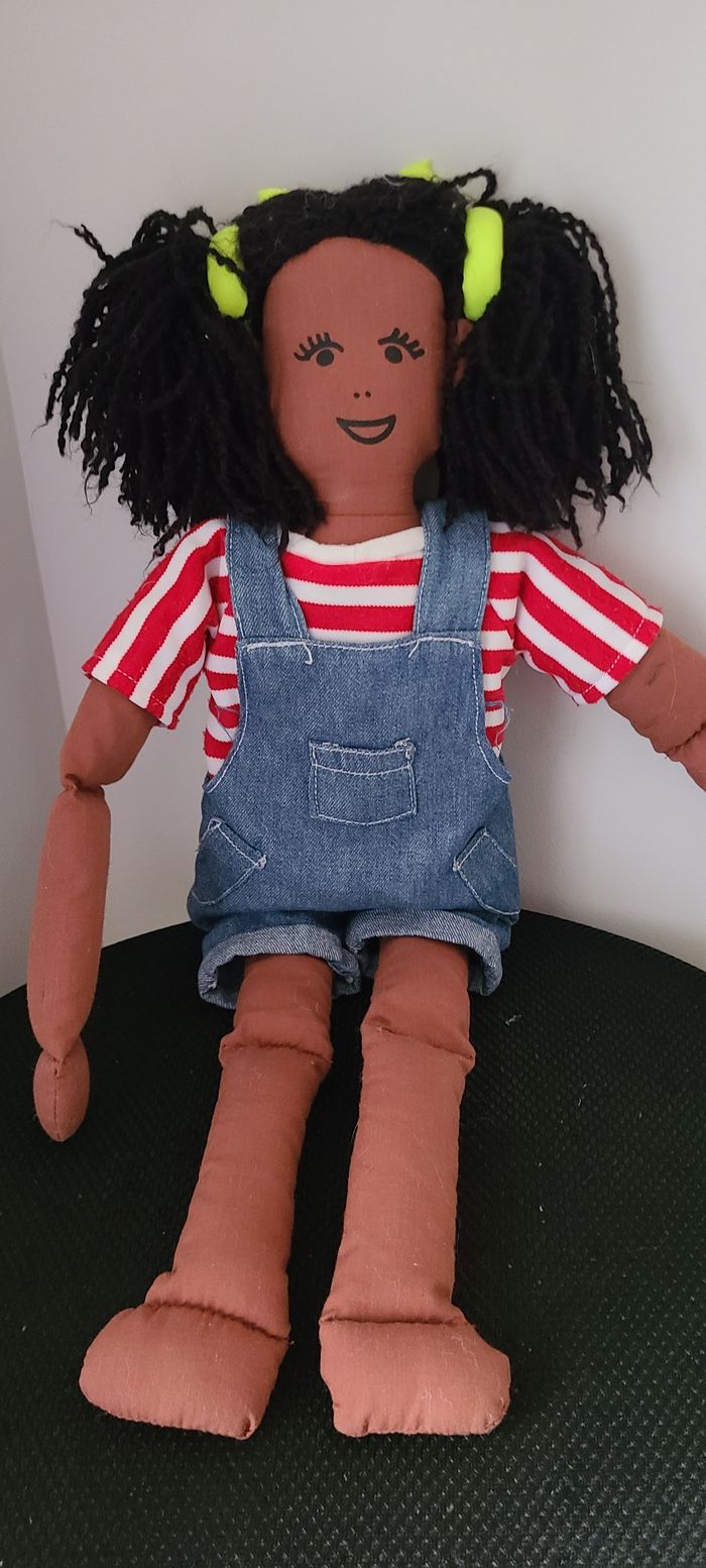 poupée chiffon de couleur salopette tee shirt rayé rouge - photo numéro 1