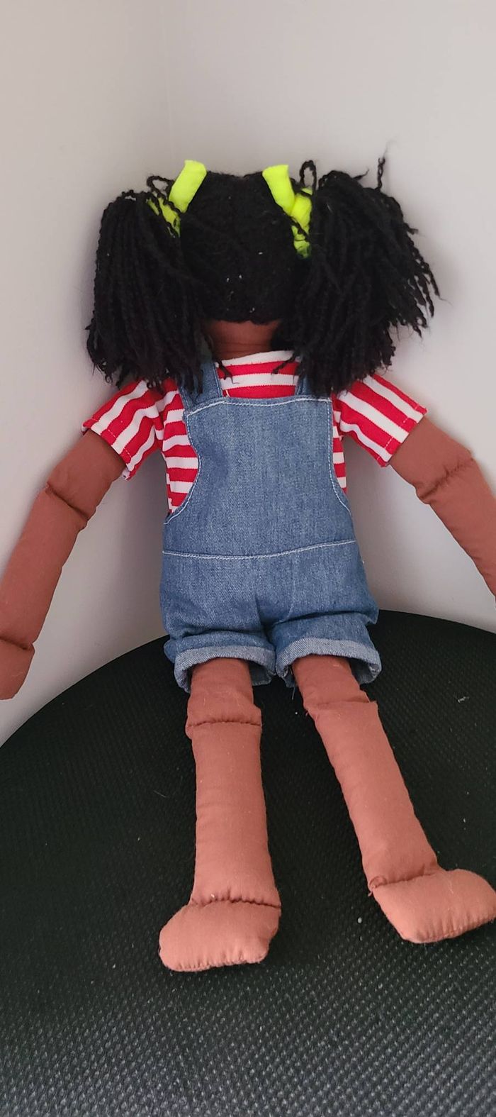 poupée chiffon de couleur salopette tee shirt rayé rouge - photo numéro 4