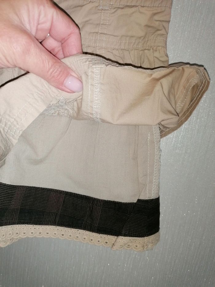 #familimimifille3ans TBE rarement portée, le colori est un mélange de beige kaki et marron pour la doublure qui dépasse. Taille haute avec un effet double taille. Taille réglable, 2 poches arrière. Toutes les catégories sont rangées par#, n'hésitez pas à jeter un œil et pourquoi pas faire un lot