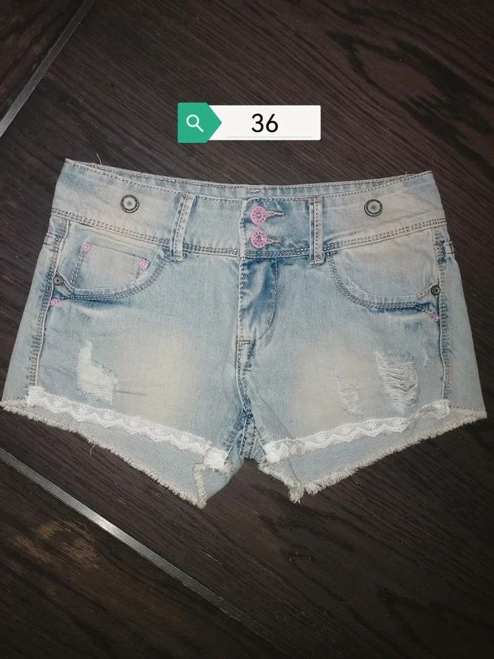 Short en jeans blanchi et dentelle 36 - photo numéro 1