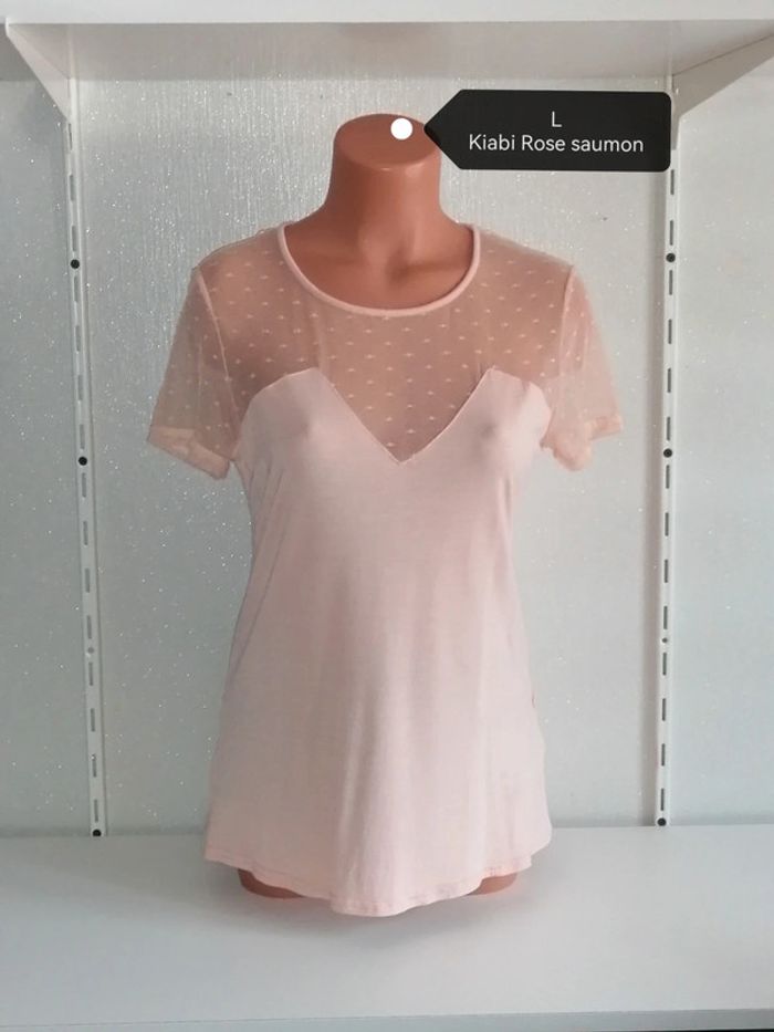 Tee-shirt rose saumoné L Kiabi - photo numéro 1