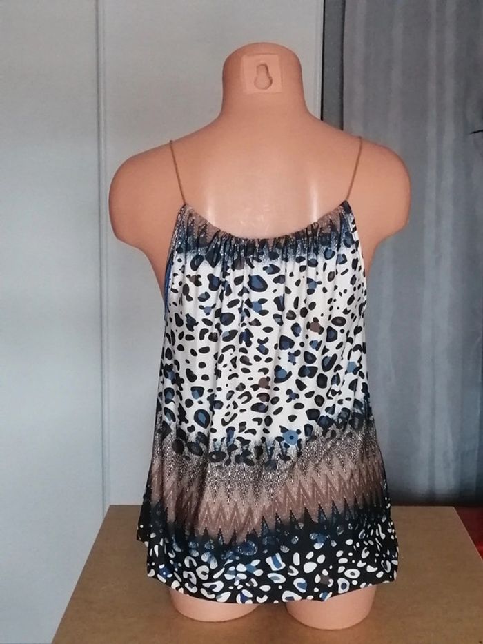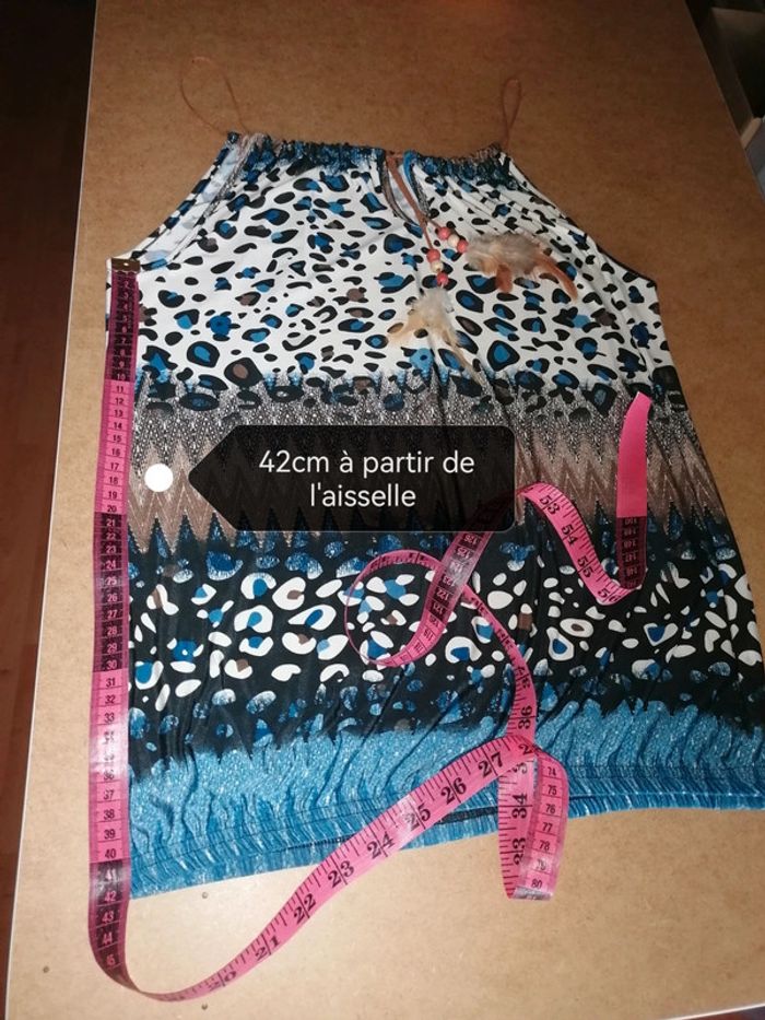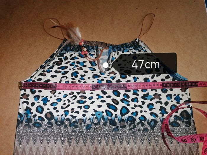 #familimimifemme38 En TBE pour du porté, liens de coulisse à nouer sur le décolleté aux finitions perles et plumes.. La base est élastiquèe. Ses mesures sont en photos. Blanc bleu marron. Toutes les catégories sont rangées par#, n'hésitez pas à jeter un œil et pourquoi pas faire un lot