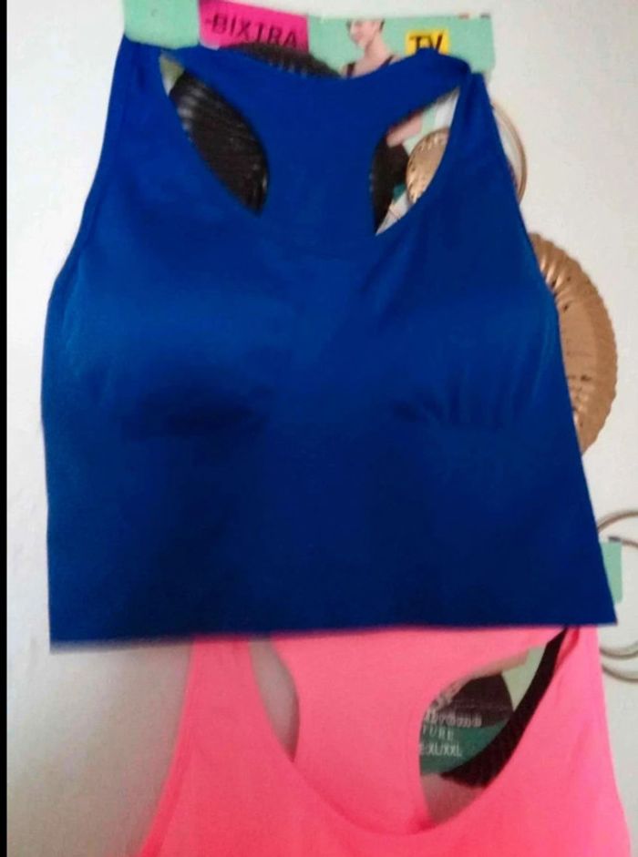 Lot de 2 brassière Taille xl/xxl Convient pour un S/L petit xl Tissu qui sert bien Jamais mis Aucune offre ne sera acceptée