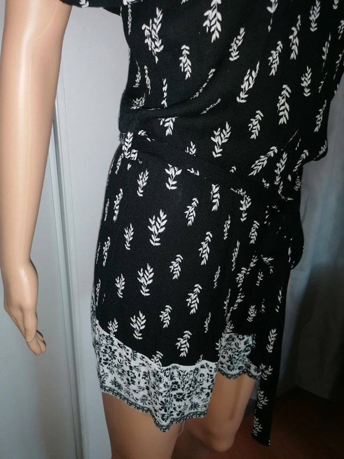 TBE pour du porté, peut convenir aussi à un 38. Le décolleté se porte différemment grâce à son pourtour élastiquè. Passants ceinture avec sa ceinture amovible. Très bonne qualité, agréable à porter en été.