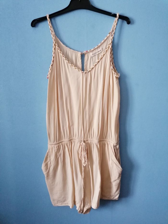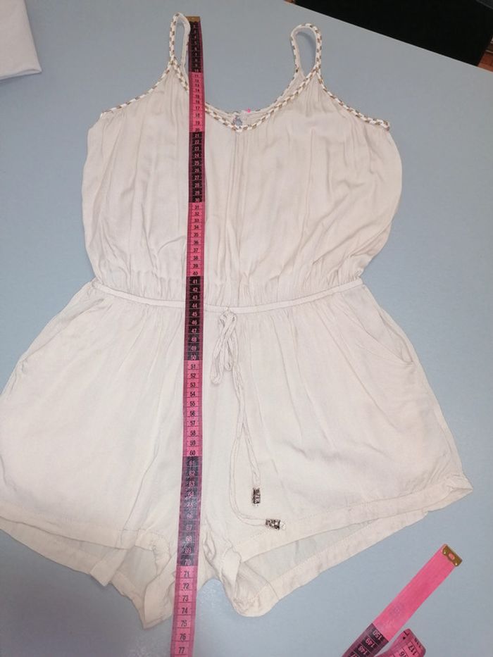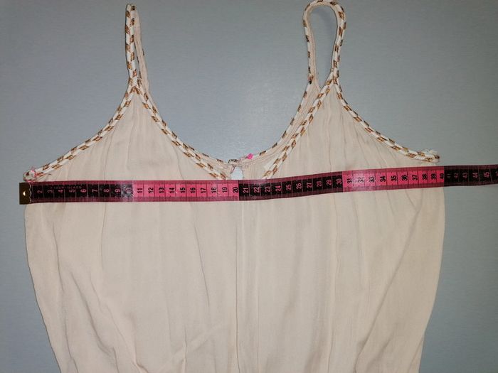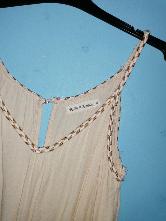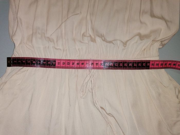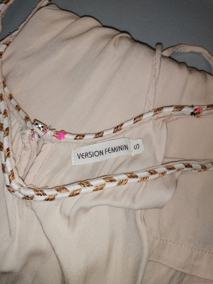 #familimimifemme36 TBE en coton beige et doré . 1 bouton au dos. Taille elastiquèe, 2 poches. Les mesures sont en photos. Toutes les catégories sont rangées par #, n'hésitez pas à jeter un œil et pourquoi pas faire un lot