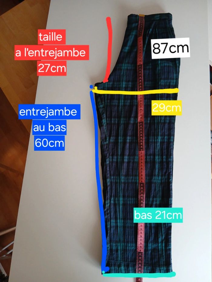 #familimimifemme34 TBE pour du porté. Style chino décontracté. Colori bleu presque marine et vert canard. Élastiqué au dos de la taille. 2 poches. Ses mesures sont en photos. Toutes les catégories sont rangées par # ,n'hésitez pas à jeter un œil et pourquoi pas faire un lot
