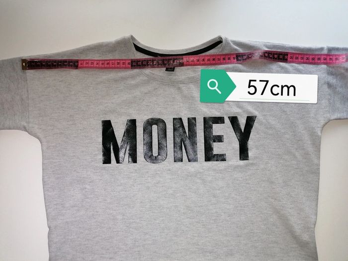 #familimimifille16ans #familimimifemme38 Rarement porté, état neuf. C'est un gris chiné avec flocages noirs. Ses mesures sont en photos. Soit un sweat fin et léger ou Tee-shirt épais. Toutes les catégories sont rangées par#, n'hésitez pas à jeter un œil et pourquoi pas faire un lot