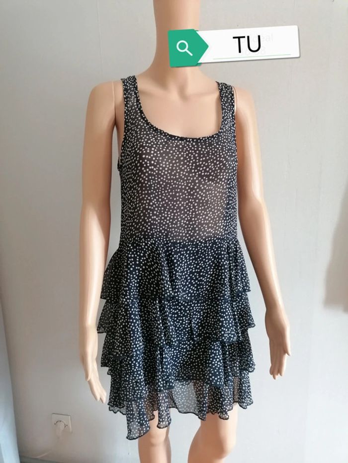 #familimimifemme36 #familimimifemme38 #familimimifemme40 Bien vérifier les mesures données en photos !!! TBE pour du porté, la partie haute est transparente !! Se porte sur une doublure ou top, ou pas 😉 Doublée entre les rangs volantès. Fluide et légère. Toutes les catégories sont rangées par#, n'hésitez pas à jeter un œil et pourquoi pas faire un lot #robetuniquetailleunique #robetunique363840