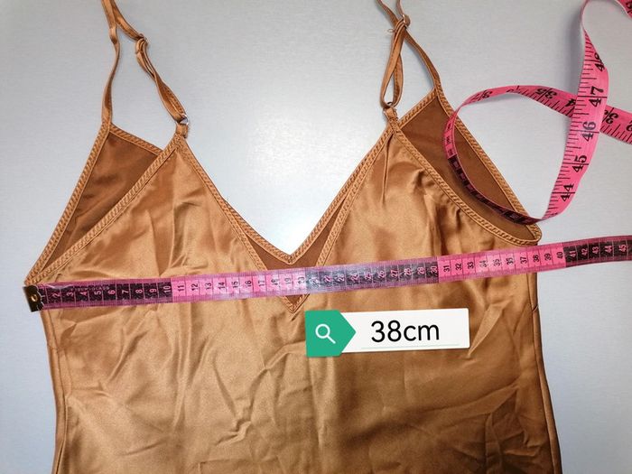 #familimimifemme36 TBE pour du porté, juste discrètes imperfections (2 dernières photos) fils tirés sans trous..les bretelles sont réglables. Colori bronze aspect soyeux. Toutes les catégories sont rangées par #, n'hésitez pas à jeter un œil et pourquoi pas faire un lot #caracozara36 #zarafemme36 #caracobronze