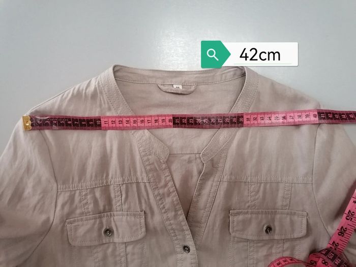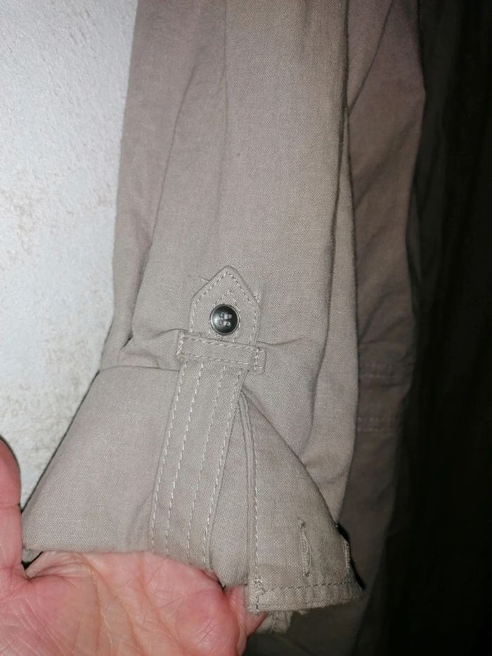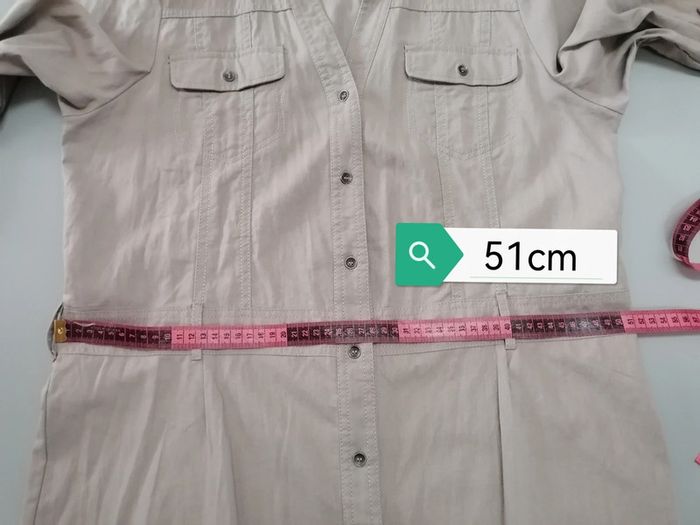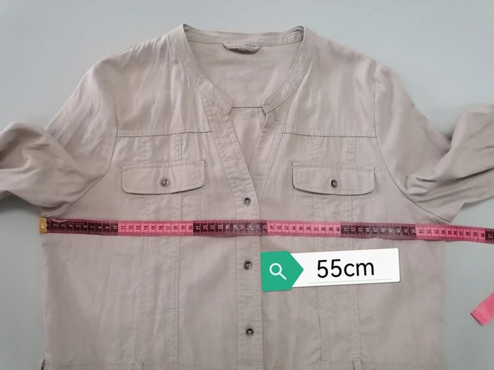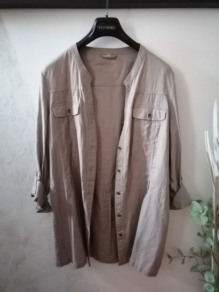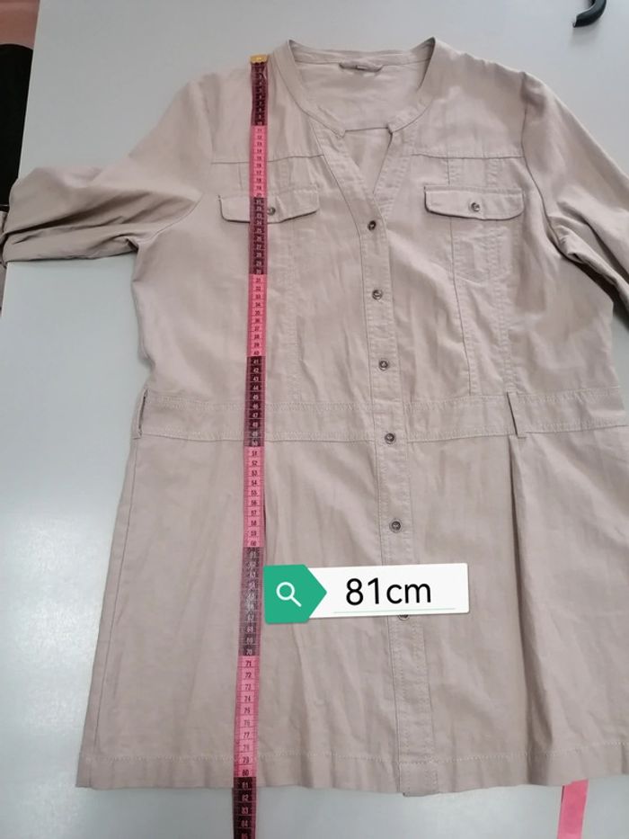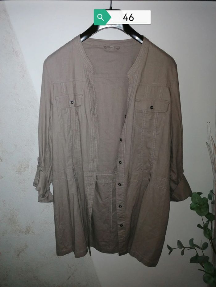 Portée 1fois, en état neuf.. Se porte en tunique ou en petite veste ouverte 😍 seul la ceinture est manquante.. Colori lin, se boutonne entièrement, manches retroussables. 2 poches.