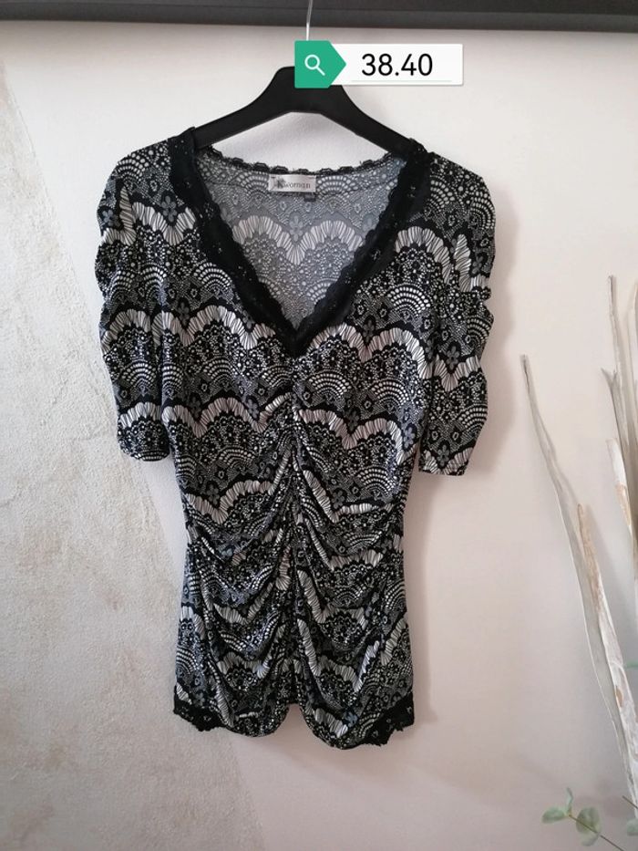 #familimimifemme38 TBE pour du porté, léger et fluide. Smokè sur les manches et sur l'avant. Toutes les catégories sont rangées par #, n'hésitez pas à jeter un œil et pourquoi pas faire un lot #hautkiabi3840 #teeshirtkiabi3840