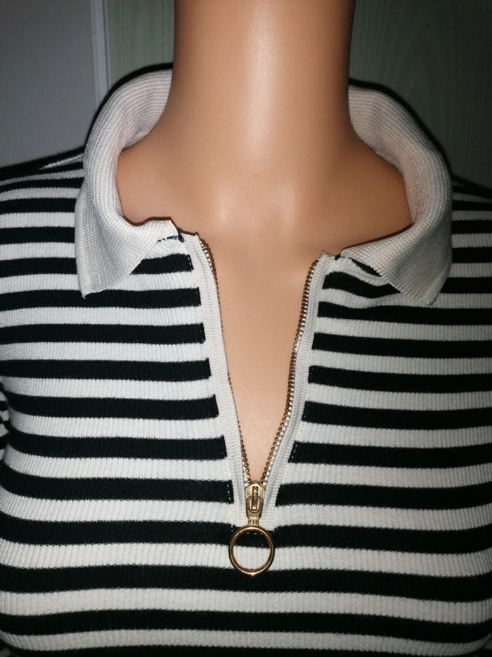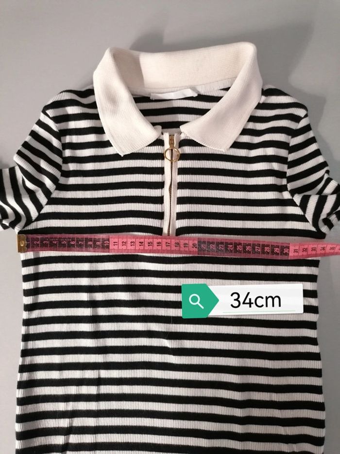 #familimimifemme34 TBE pour du porté, colori écru et noir, se porte près du corps, matière extensible. Ses mesures sont en photos. Toutes les catégories sont rangées par #, n'hésitez pas à jeter un œil et pourquoi pas faire un lot #teeshirtpolo #polomngxs #mngxs