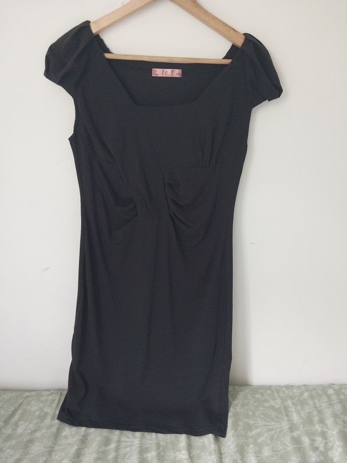 Coup de cœur assuré pour cette petite robe noire intemporelle à la coupe près du corps, ultra flatteuse avec ses jolis drapés sur le devant. Encolure carrée et manches légèrement froncées pour une touche chic et féminine. 🔹 Mesures à plat : Aisselle à aisselle : 40 cm Longueur (aisselle jusqu’en bas) : 70 cm 🔹 Correspond à une taille M (pas d’étiquette de taille) 🔹 Matière : 95% coton – 5% élasthanne (confort et souplesse) Parfaite pour un dîner, une soirée ou un rendez-vous pro ✨ En très bon état ✅ #robemoulante #petiterobenoire #robechic #robeelegante #jeFcollection