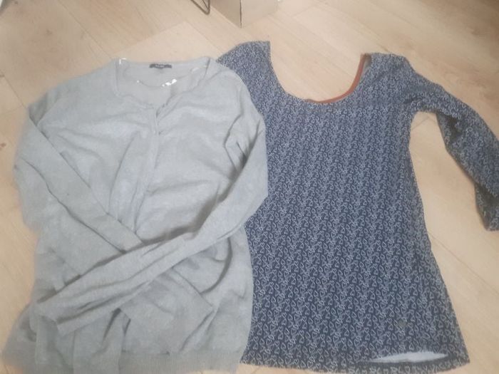Gilet gris boutonnée Tee shirt manches longues, col arrondi , bas arrondi marque Bonobo