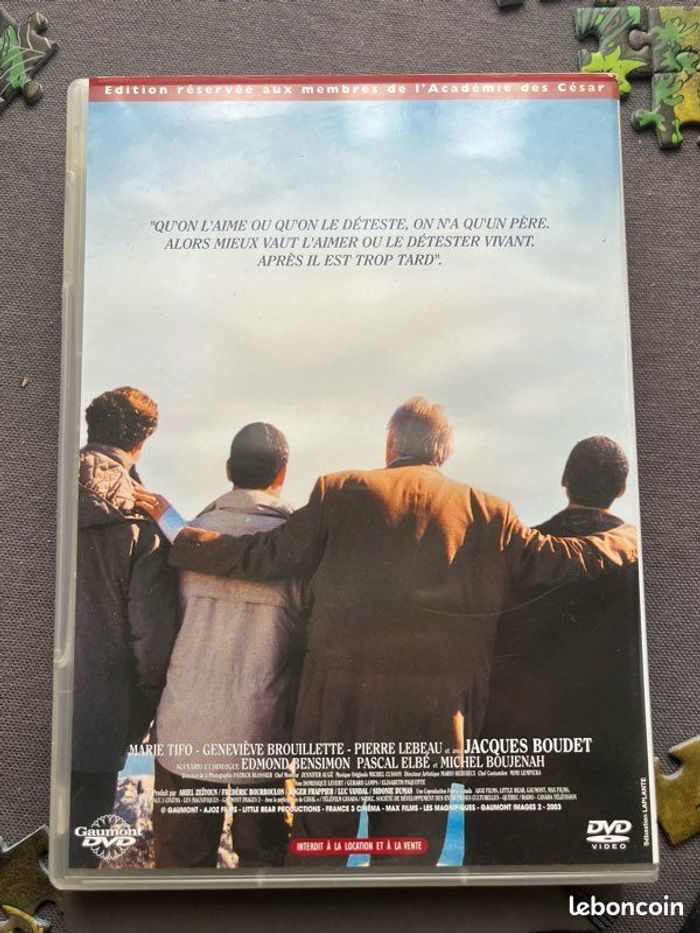Vends DVD du film « Père et fils » avec Philippe Noiret, Charles Berling et Pascal Elbé. Le boîtier est en très bon état ainsi que le DVD. Il fonctionne parfaitement. Il pèse 101g. Idéal pour les amateurs de cinéma, du film ou collectionneurs.