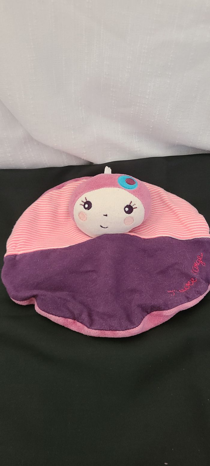 Doudou plat rond poupée mauve Sucre d'Orge 99