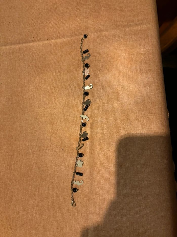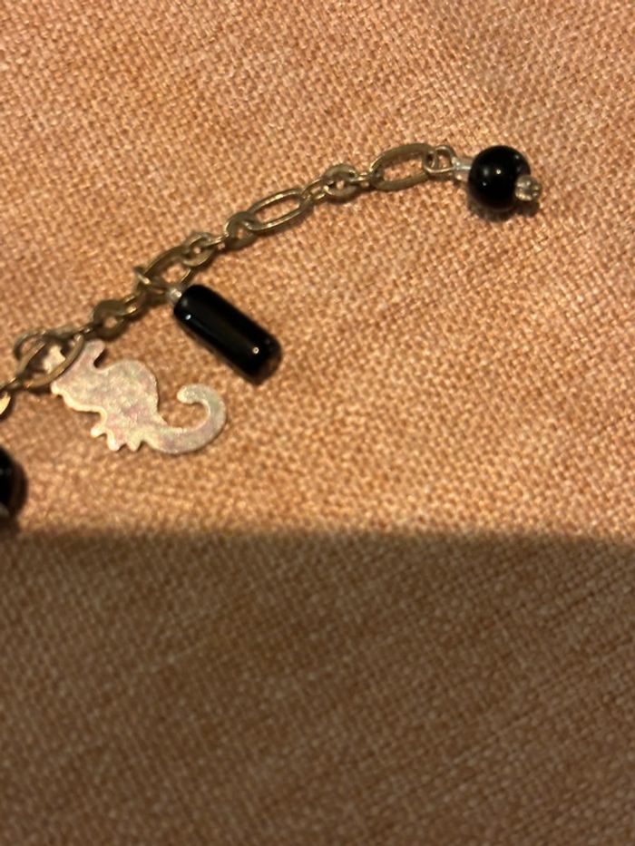 Bracelet argenté pour cheville avec poisson et hippocampe Peut être porté au poignet si on l accroche plus haut