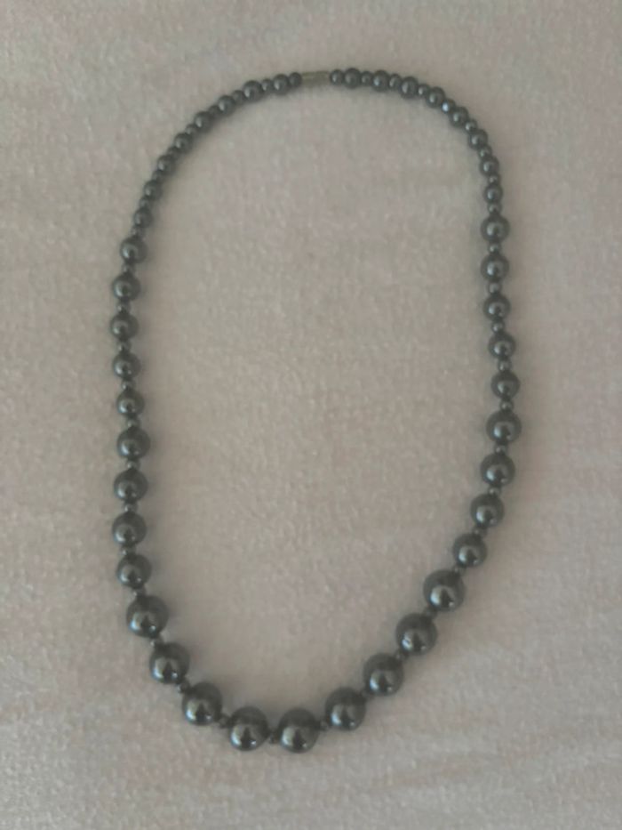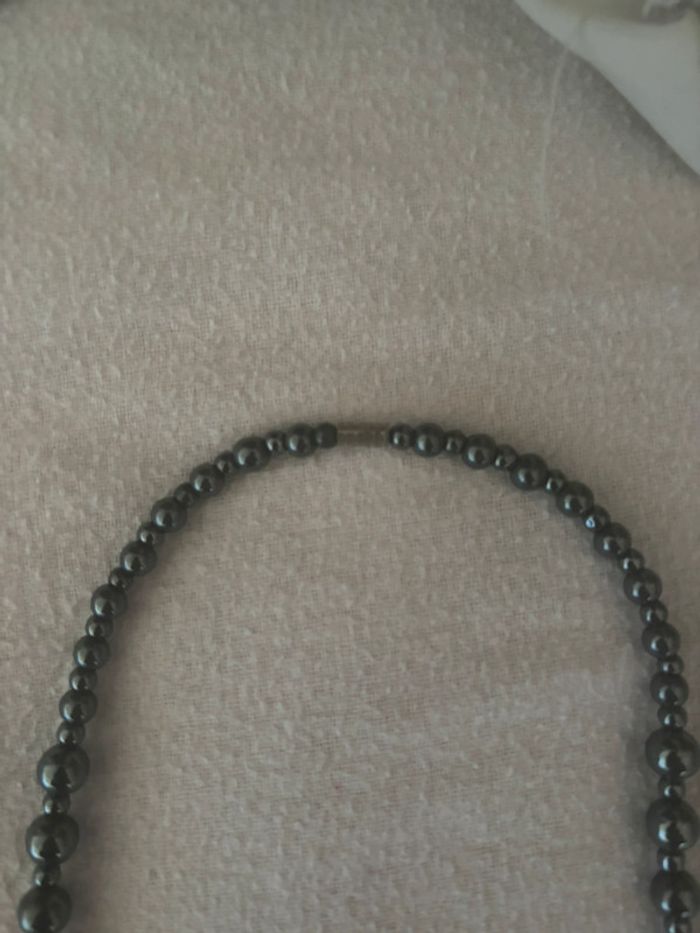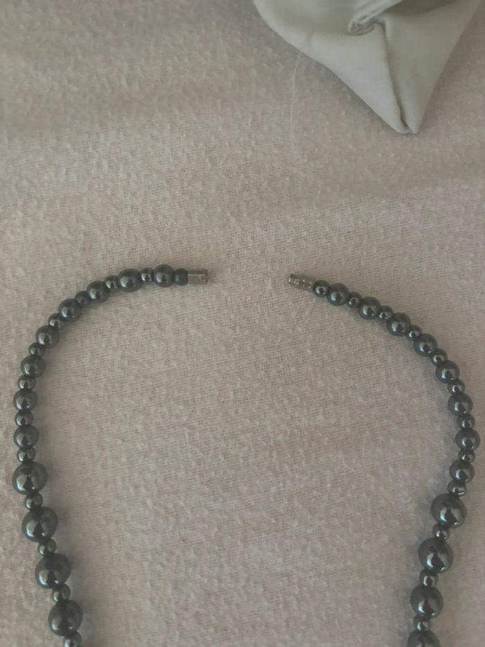 Fermoir qui se visse et se dévisse Collier en perle noir un peu argenté
