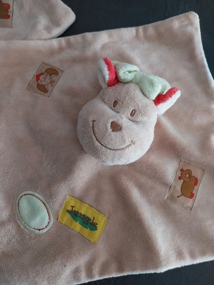 Lot de 2 Doudous girafe bengy Jungle Beige rouge vert Noeud 7€ piece Le lot 12€