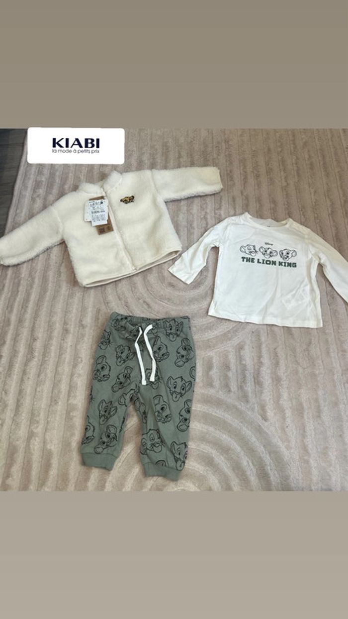 Jolie ensemble de la marque KIABI dans le thème le roi lion (collection 2024) composé d’un t-shirt assortie avec son jogging ainsi que ça veste État : Neuf jamais mis ✅ Envoie Mondial relais, chronopost… 📦 N’hésitez pas à faire des lots, et à défiler tout au long du dressing, de belles pièces #kiabi