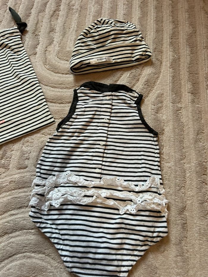 Très jolie ensemble composé d’un body, un bonnet assortie et son pochon. État : Très bon état général ✅ Envoie Mondial relais, chronopost… 📦 N’hésitez pas à faire des lots, et à défiler tout au long du dressing, de belles pièces #marese