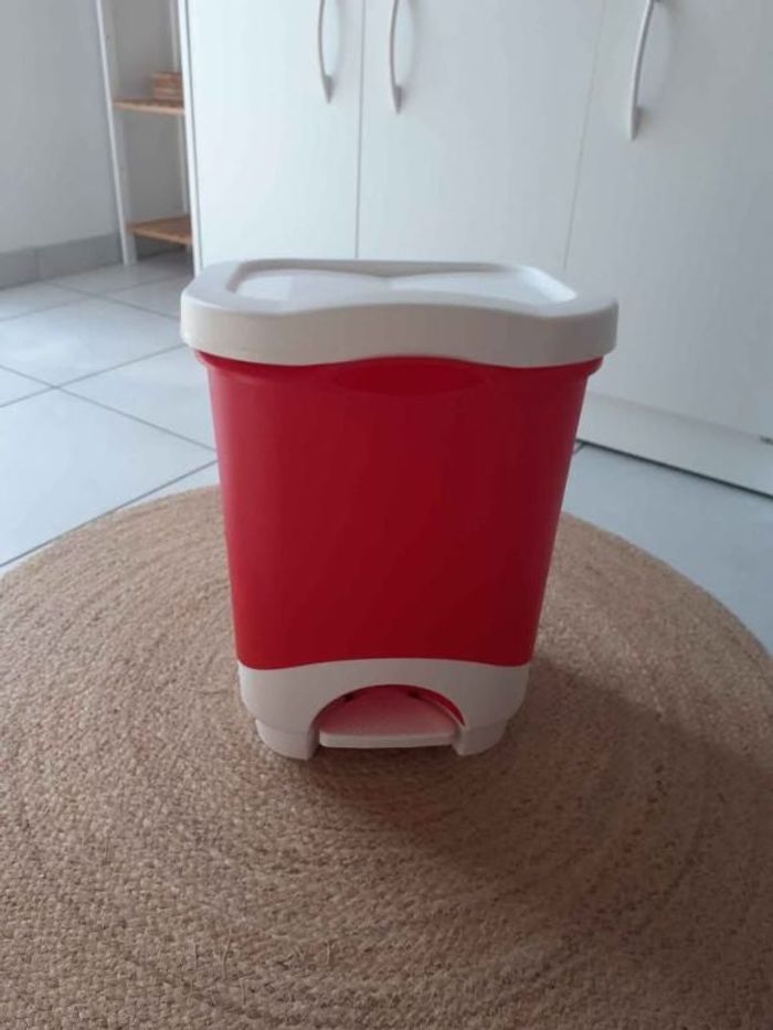 Vend une poubelle à pédale. Pédale qui ne fonctionne pas et quelques rayures sur le devant (voir dernière photo).