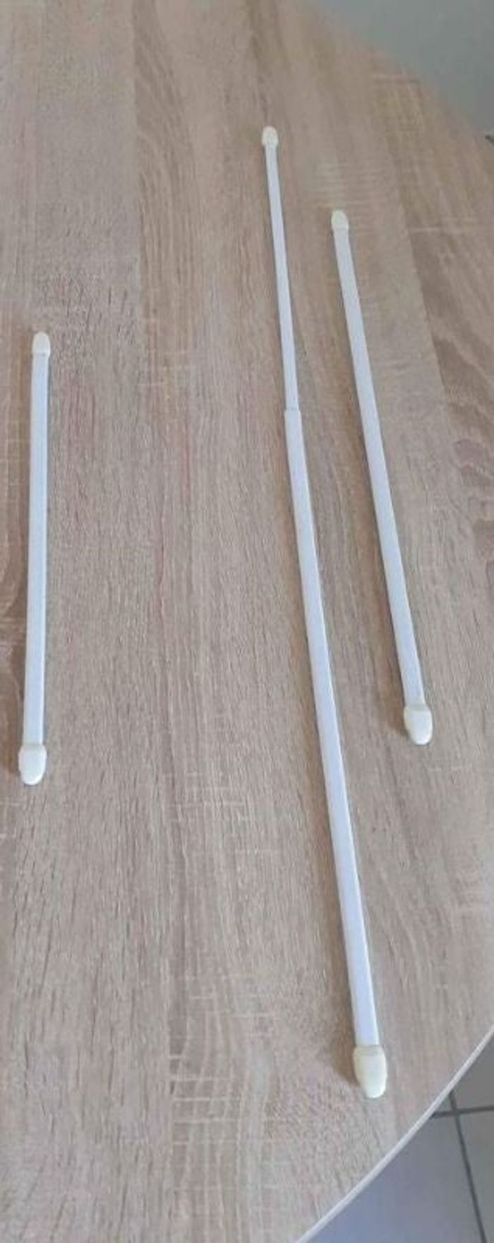 Vend sur la première photo; deux petites et une plus grande tringles. 50 centimes une tringle. Sur la deuxième photo; deux petites et une plus grande. 50 centimes une tringle. Et sur la troisième photo; deux lots de deux tringles. 2 euros un lot. #AutreHappy71120