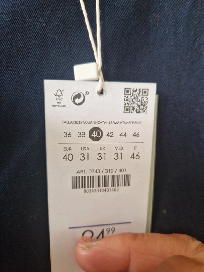 Pantalon pour homme neufs avec étiquettes. Fermeture éclair en bas sur les jambes. Deux poches latérales. Passants pour la ceinture. Boutons et agraphe métallique à la taille Petit sachet avec deux boutons de rechange. Pantalon 100% coton . Modèle slim cropped Taille française 40 Taille US 31 #ellaben_pantalonhomme #ellaben_kdoneufs