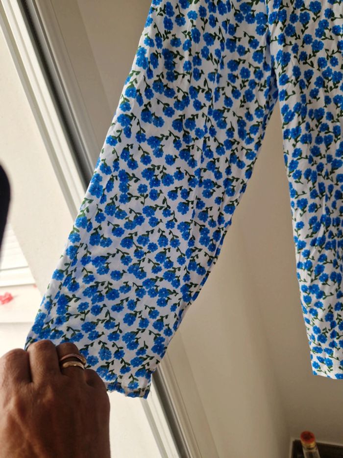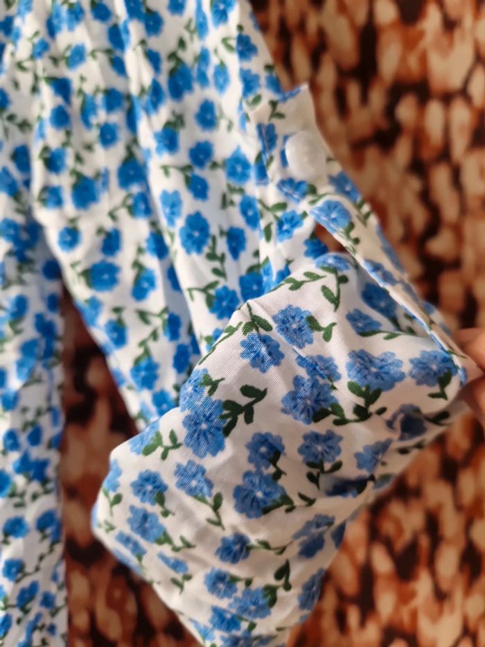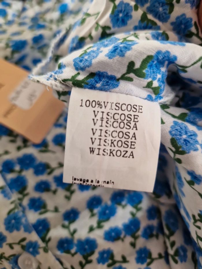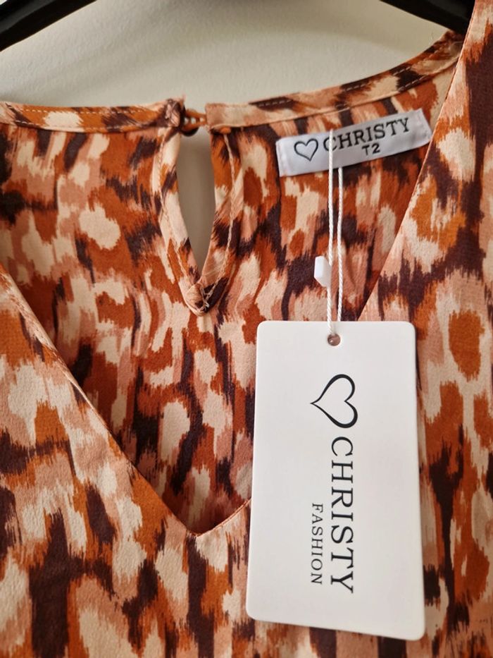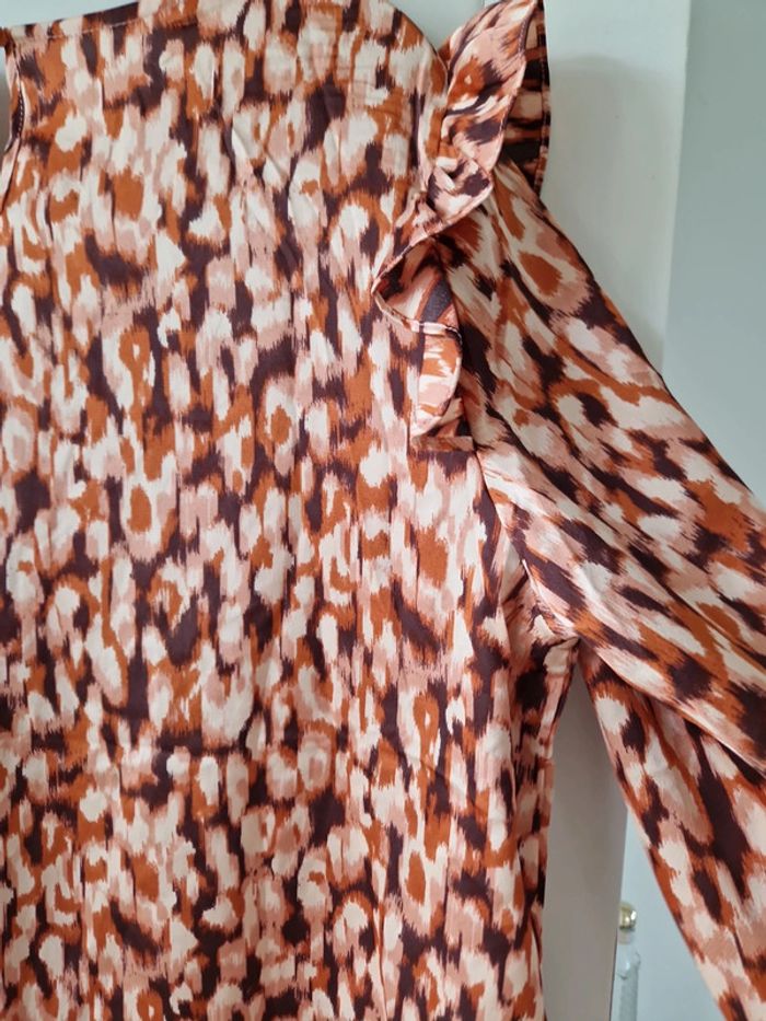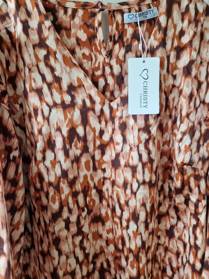Lot de deux blouses neuves avec étiquettes 🏷. Une blouse motifs léopard 🐆 manches longues resserrées en bas avec un volant. Volant dentelle également sur les épaules. Fermeture par un petit bouton. 100% polyester Blouse motifs liberty fleurs bleues. Manches longues avec une pattes pour retrousser les manches. Petite boutonnière devant avec un décolleté en V. Blouse 100% viscose. #ellaben_blousesfemmes #ellaben_grandestailles