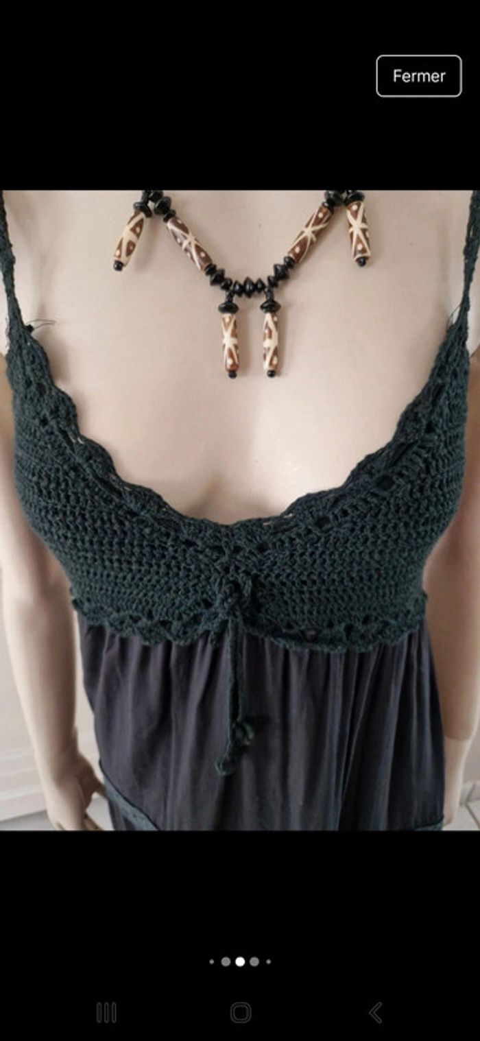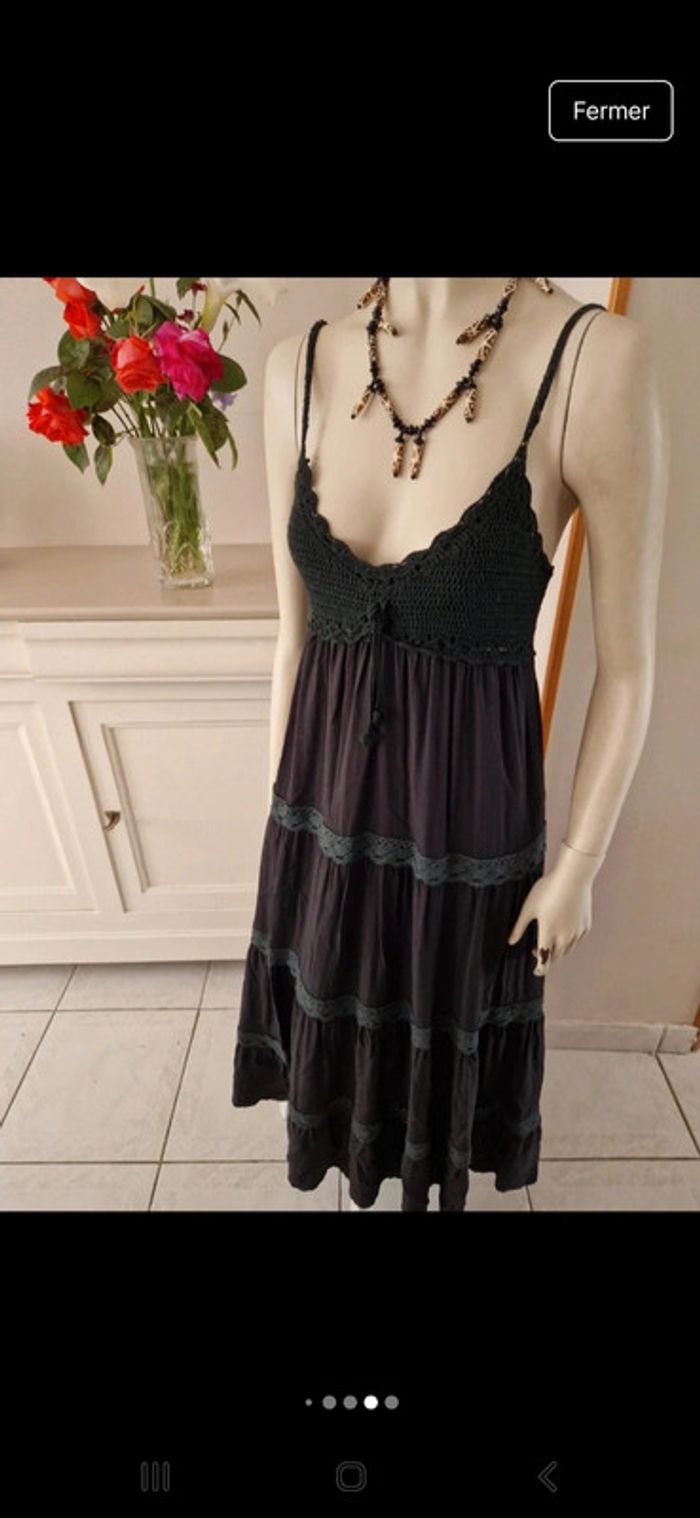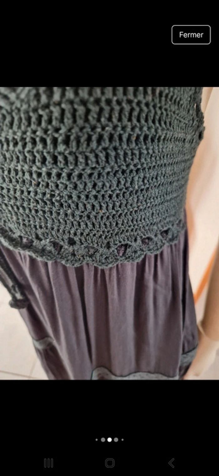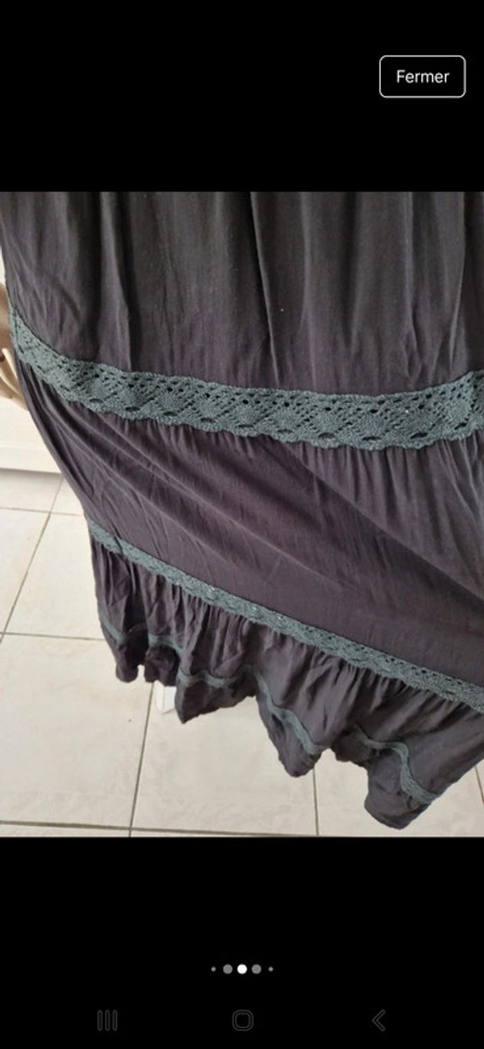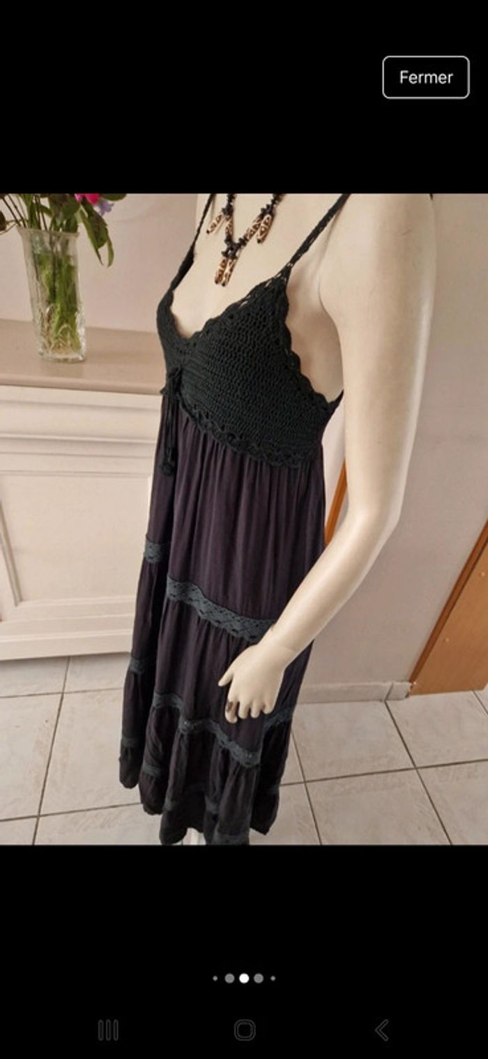 Jolie robe à bretelles avec un bustier tricoté. Robe longue avec plusieurs rangs de dentelle, Bretelles qui se règlent facilement, Robe avec un jupon. Robe avec deux tons de noirs. Taille 38/40 #ellaben_robes #ellaben_robesnoires