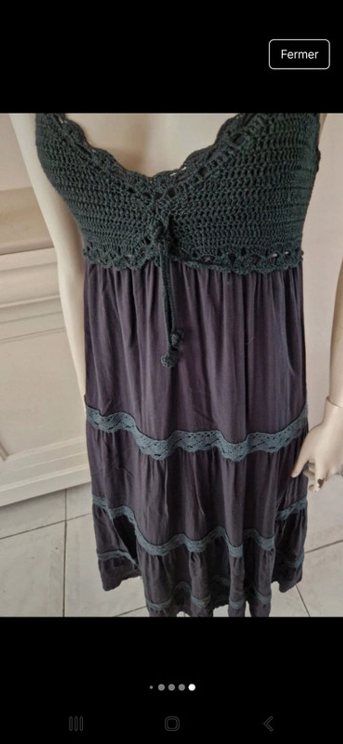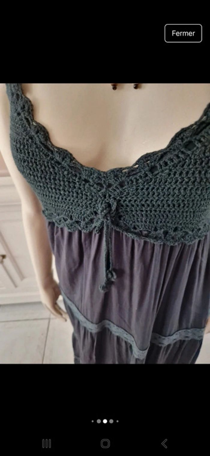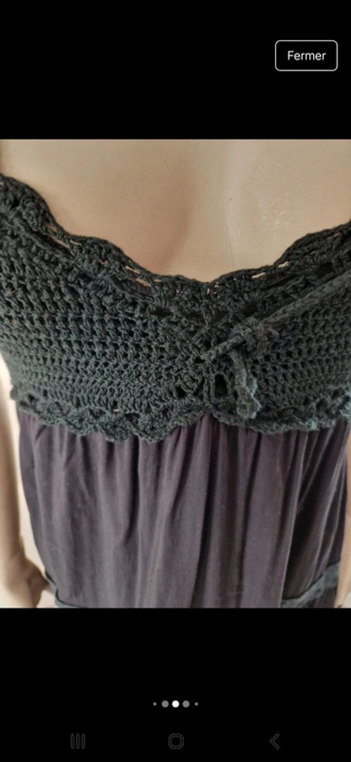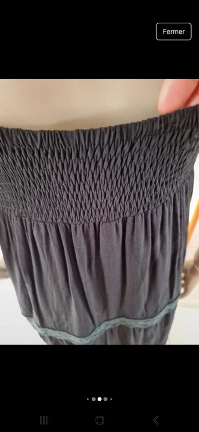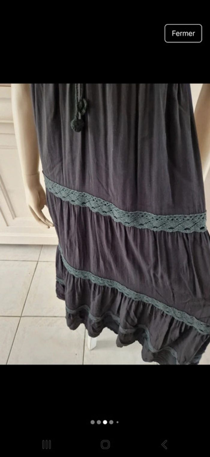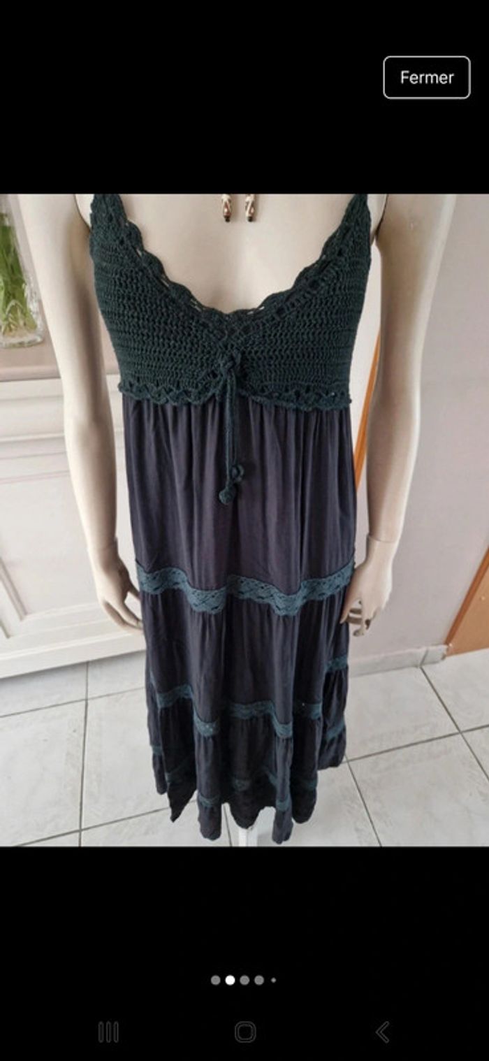 Jolie robe à bretelles avec un bustier tricoté. Robe longue avec plusieurs rangs de dentelle, Bretelles qui se règlent facilement, Robe avec un jupon. Robe avec deux tons de noirs. Taille 38/40 #ellaben_robes #ellaben_robesnoires