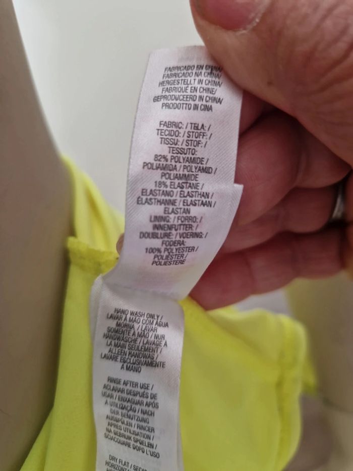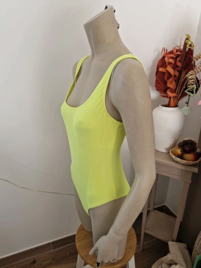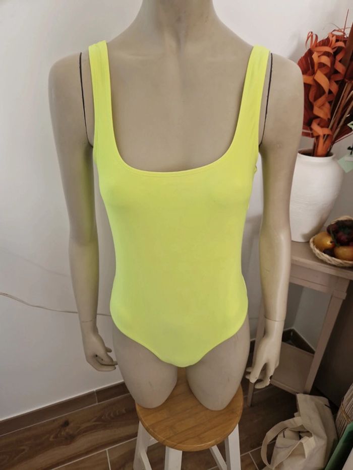 Joli maillot de bain une pièce avec une couleur éclatante jaune fluo. Décolleté plongeant dans le dos.Primark Taille 36 mais c'est plus un 38. Maillot deux pièces sans bretelles avec ficelles sur le côté du slip pour ajuster selon sa taille. LKW lingerie. Maillot de bain une pièce avec dos nu. Soutien gorge ampliforme. Queentex. LOT INDISSOCIABLE Pas de négociations pour ce prix attractif. #ellaben_maillotdebain