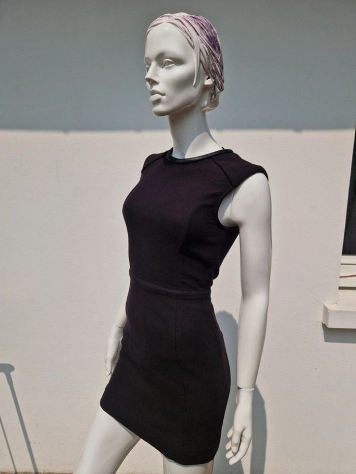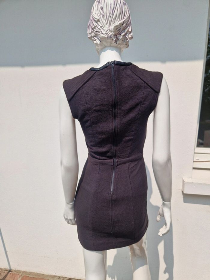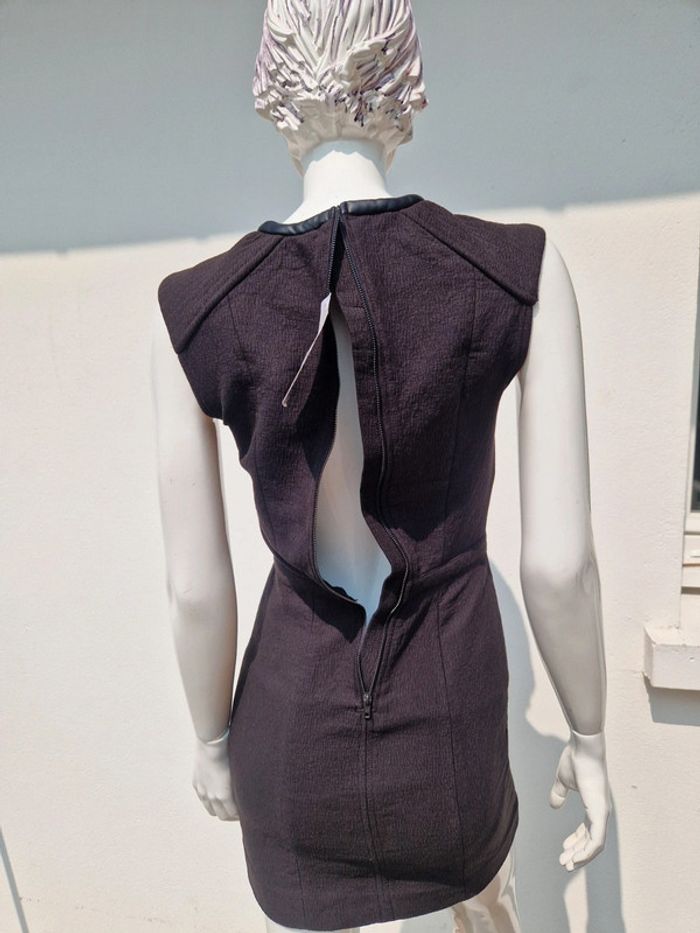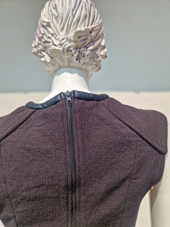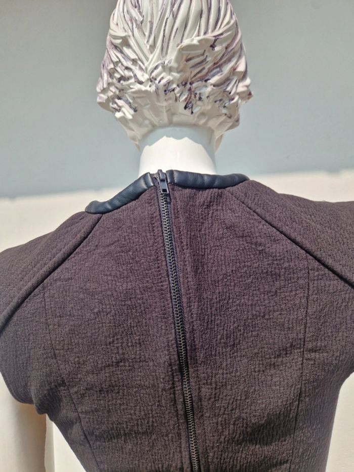 Robe 👗 mini très près du corps. Encolure arrondie bordé de cuir synthétique. Épaules avec une couture ton sur ton. Fermeture éclair dans le dos. #ellaben_robes