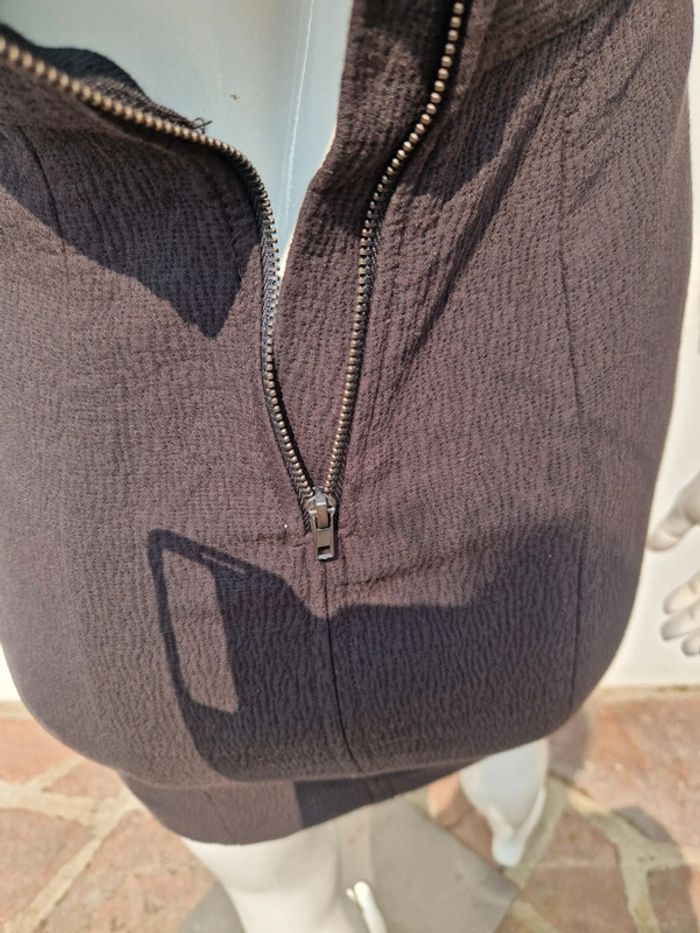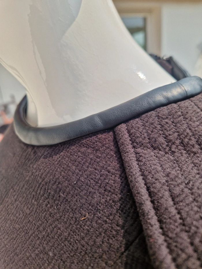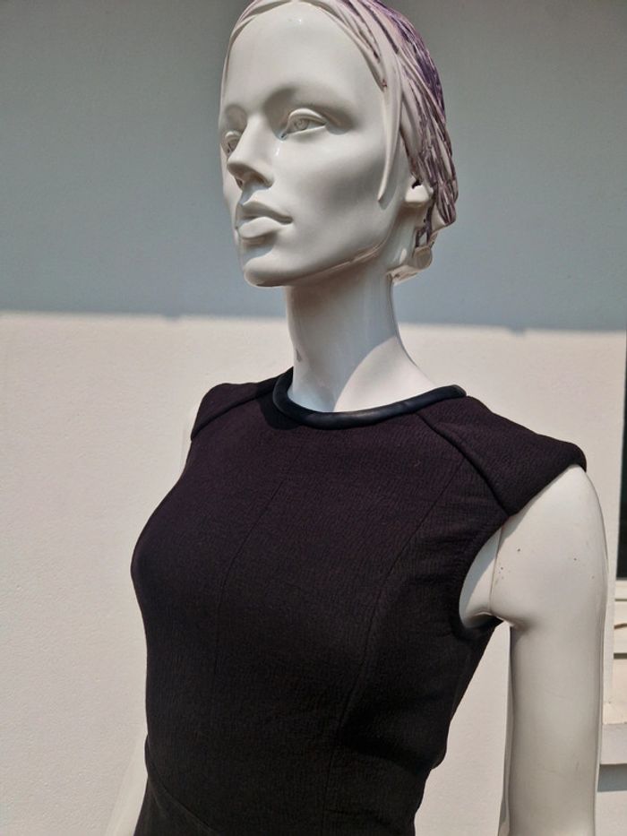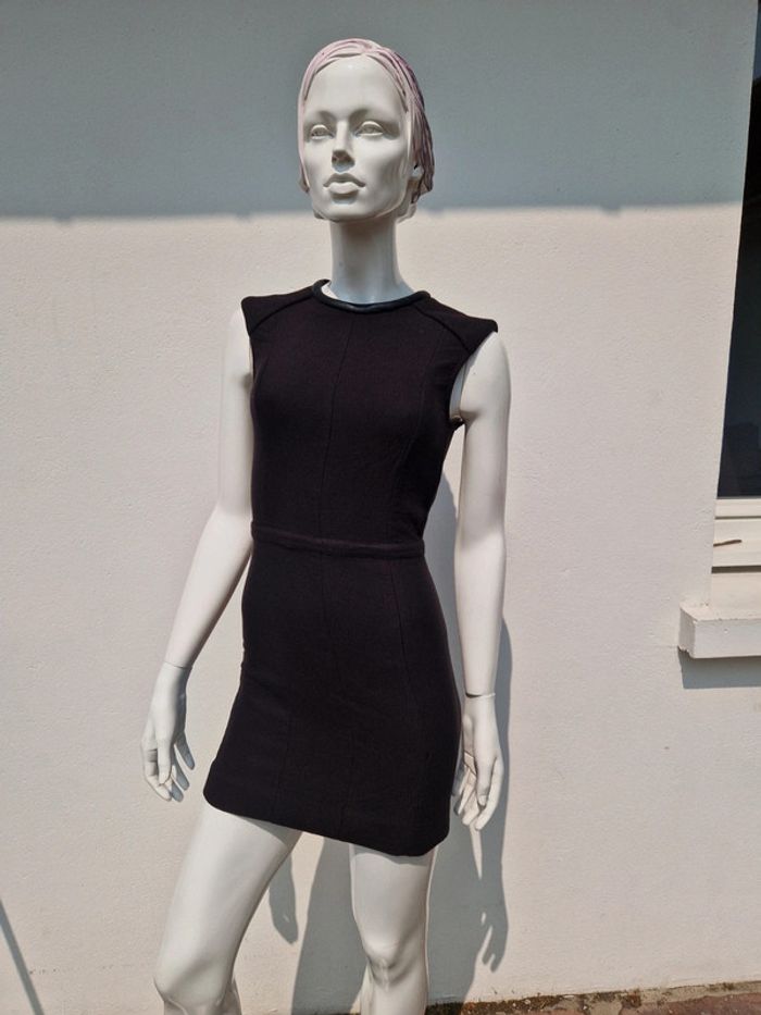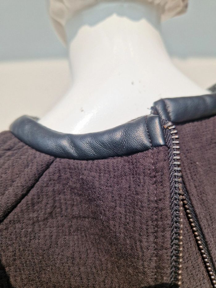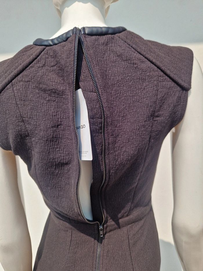 Robe 👗 mini très près du corps. Encolure arrondie bordé de cuir synthétique. Épaules avec une couture ton sur ton. Fermeture éclair dans le dos. #ellaben_robes