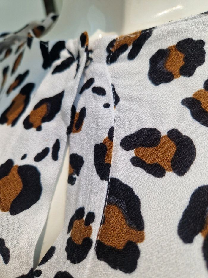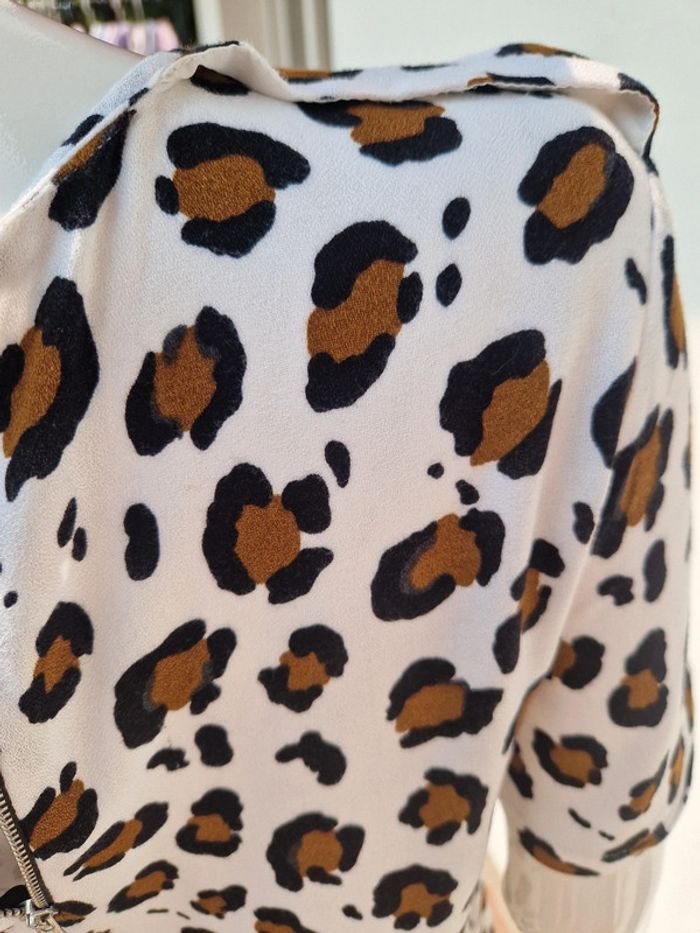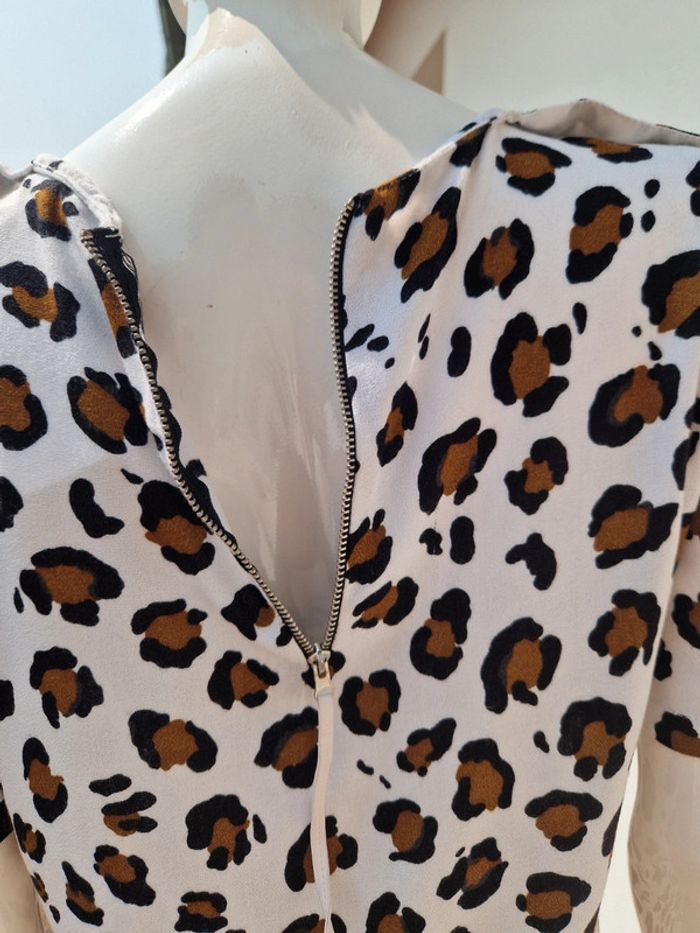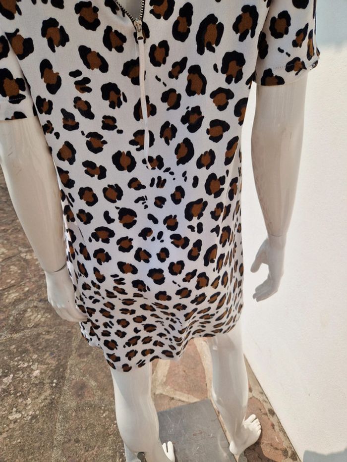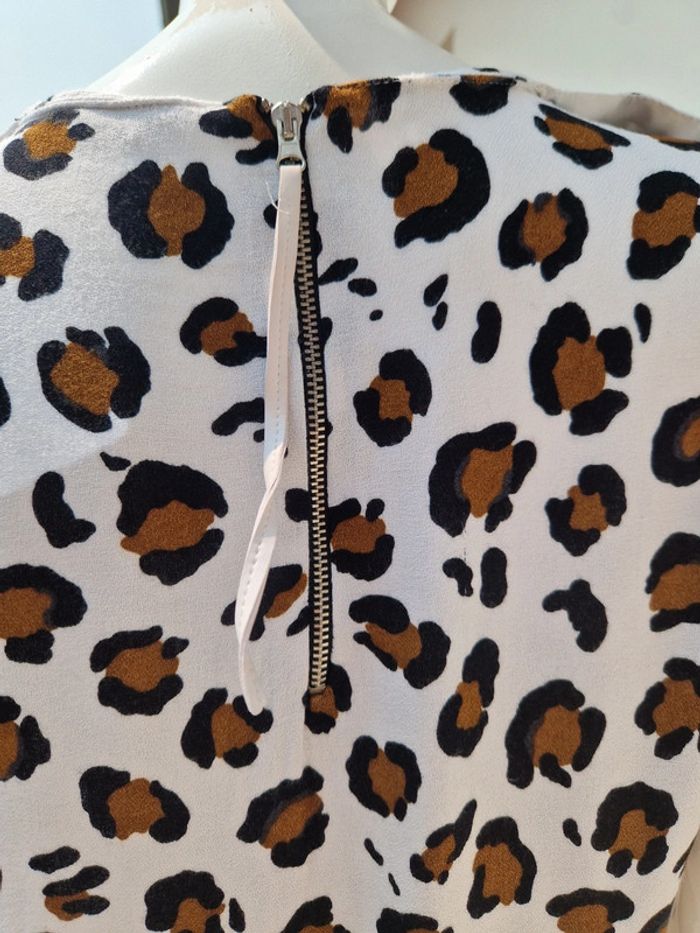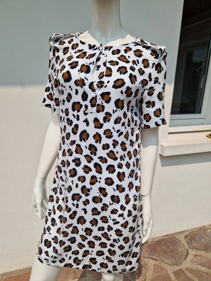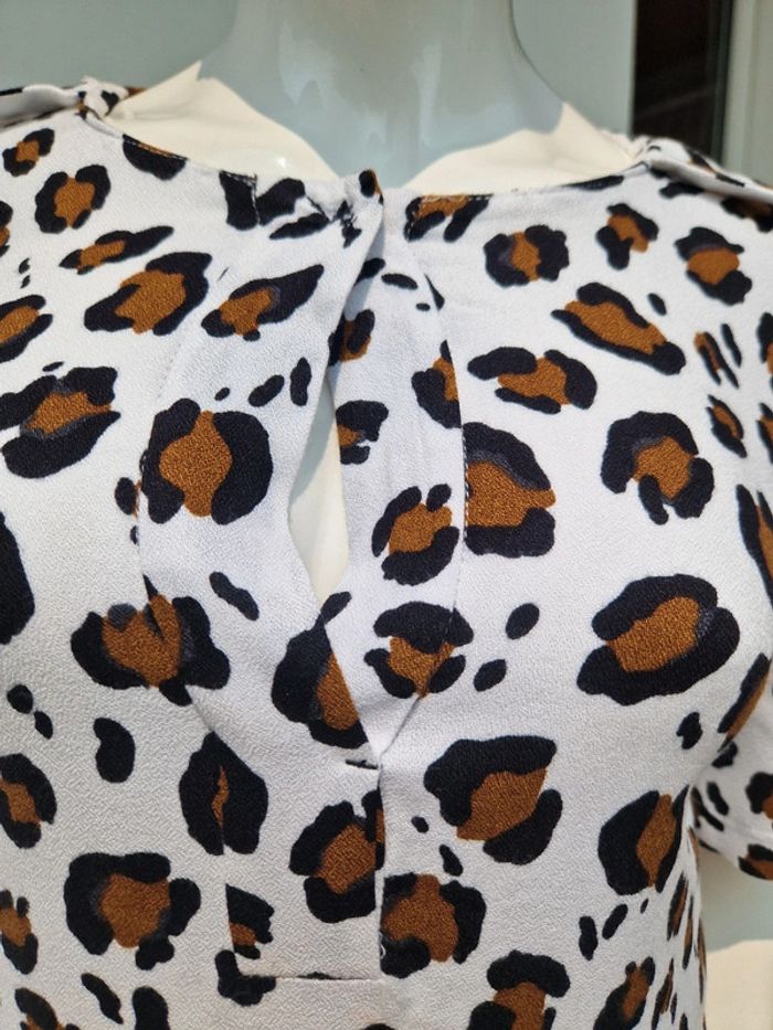 Jolie robe 👗 motifs léopard 🐆 🐆 🐆. Manches courtes. Petites pâtes sur les épaules. Décolleté avec une ouverture qui ferme avec une pression. Dans le dos fermeture apparente qui s'ouvre avec un lien en cuir. 100%viscose Élégante et légère cette jolie robe Mango. #ellaben_robes