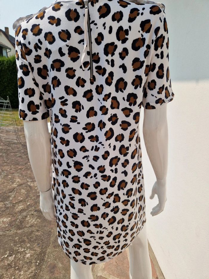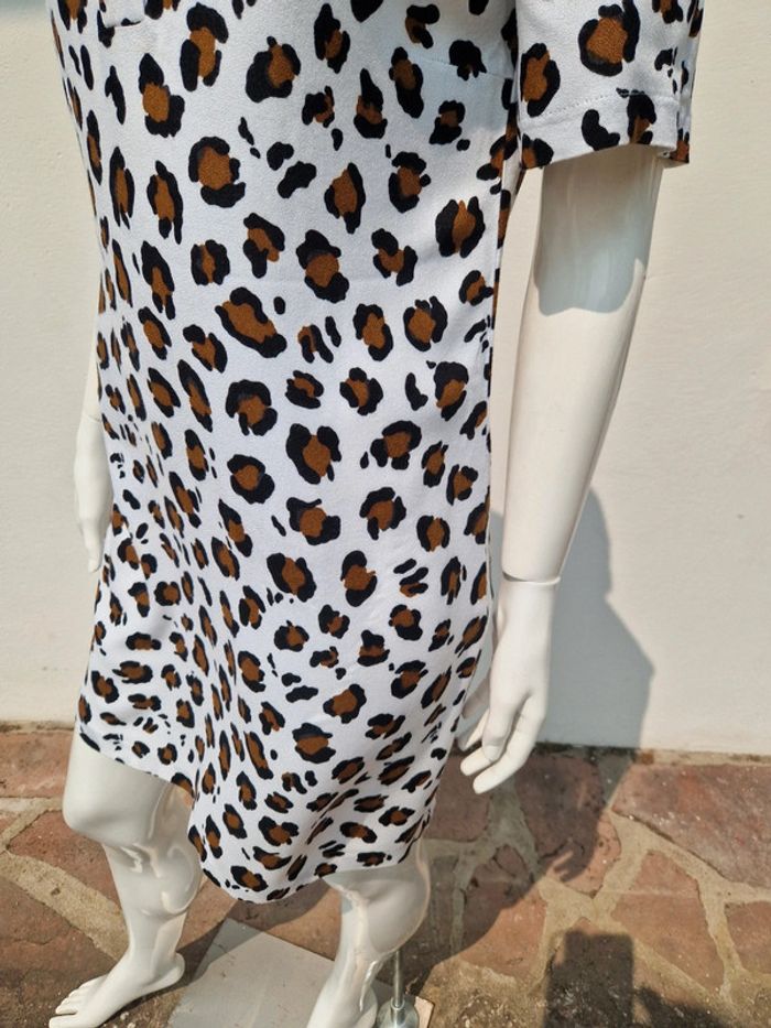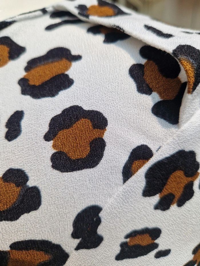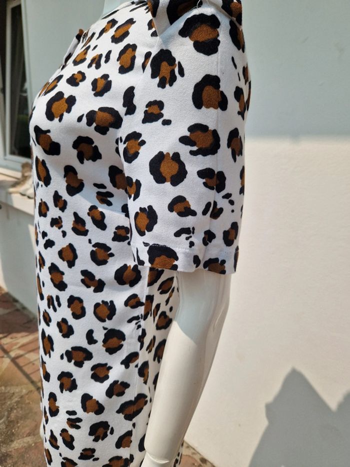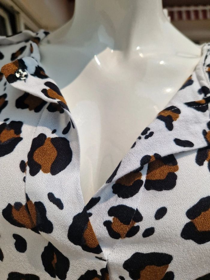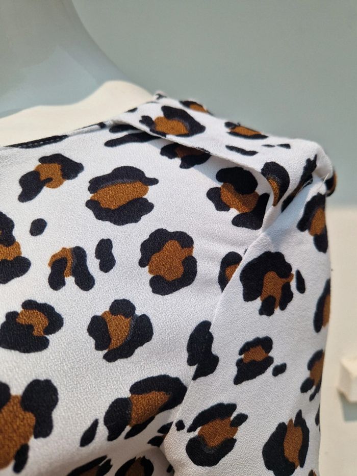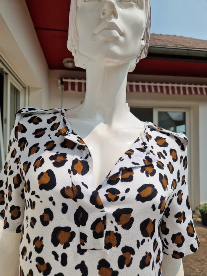 Jolie robe 👗 motifs léopard 🐆 🐆 🐆. Manches courtes. Petites pâtes sur les épaules. Décolleté avec une ouverture qui ferme avec une pression. Dans le dos fermeture apparente qui s'ouvre avec un lien en cuir. 100%viscose Élégante et légère cette jolie robe Mango. #ellaben_robes