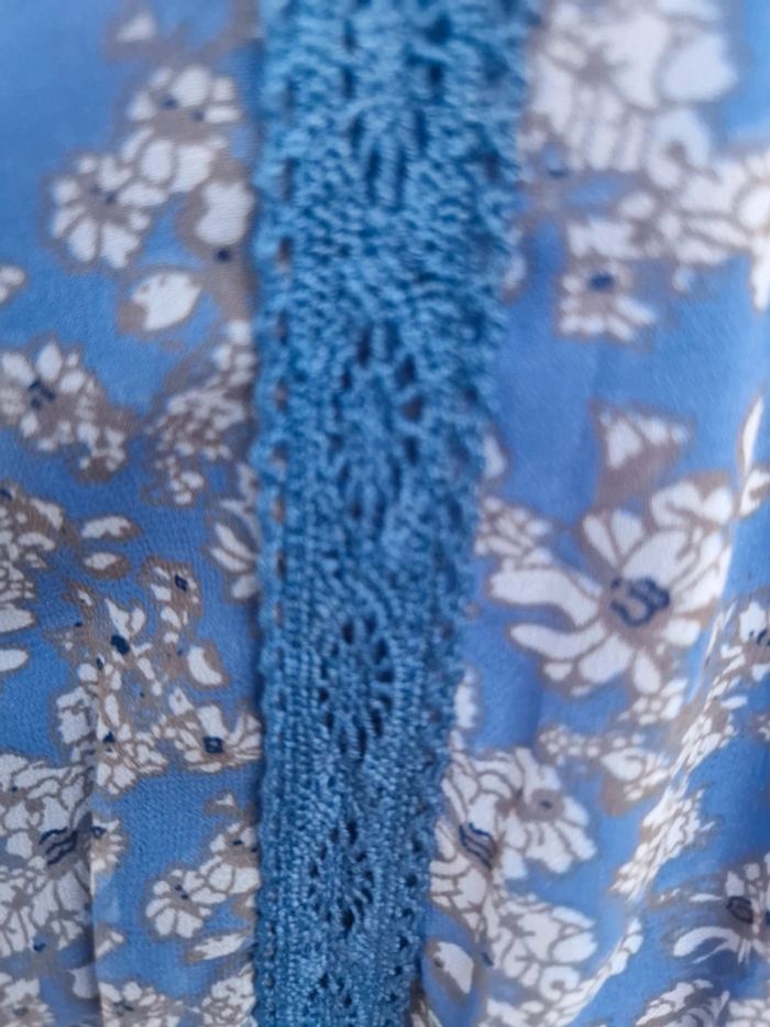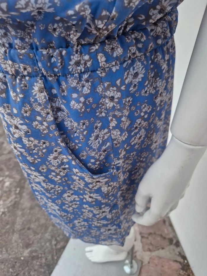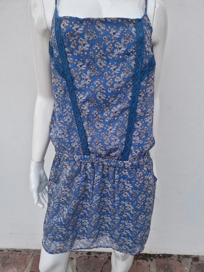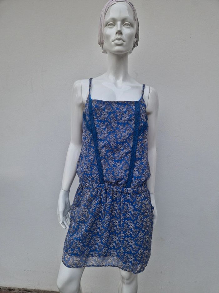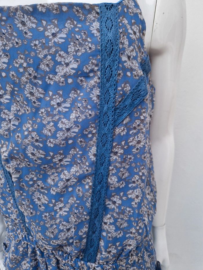 Jolie robe bustier neuve avec des bretelles qui se règlent facilement. Sur le bustier plusieurs rangs de dentelle bleu. Légèrement élastique à la taille. Deux poches latérales. 👗 Robe entièrement doublée. #ellaben_robes