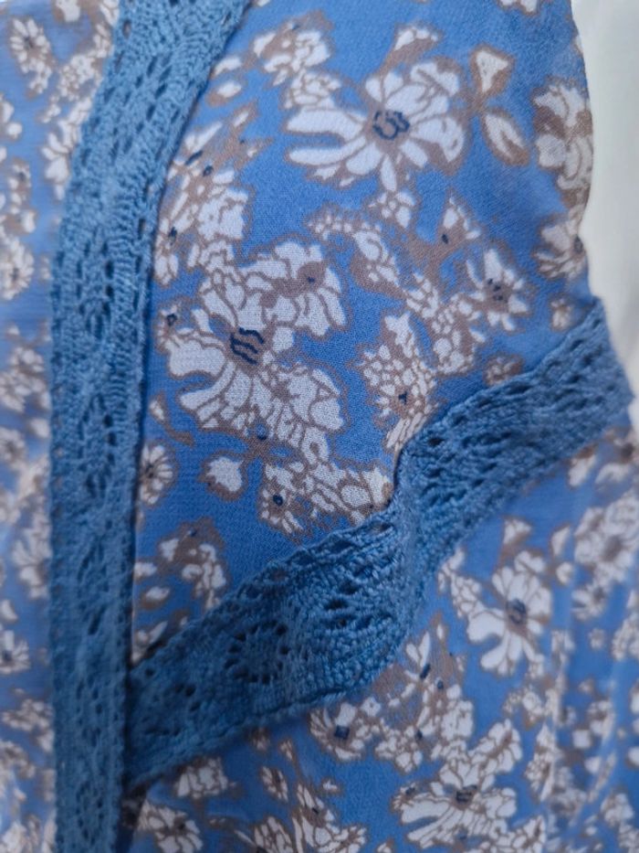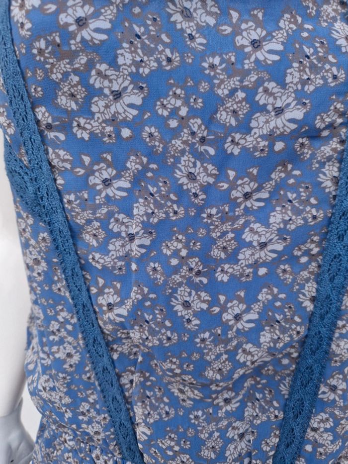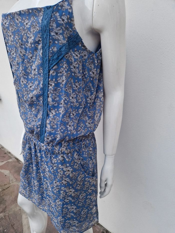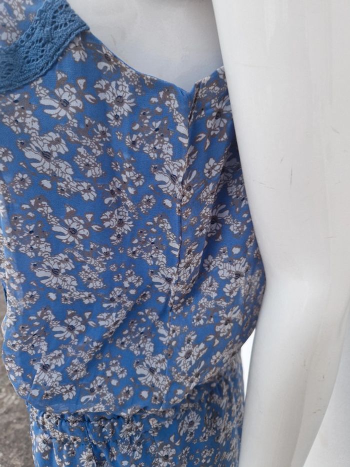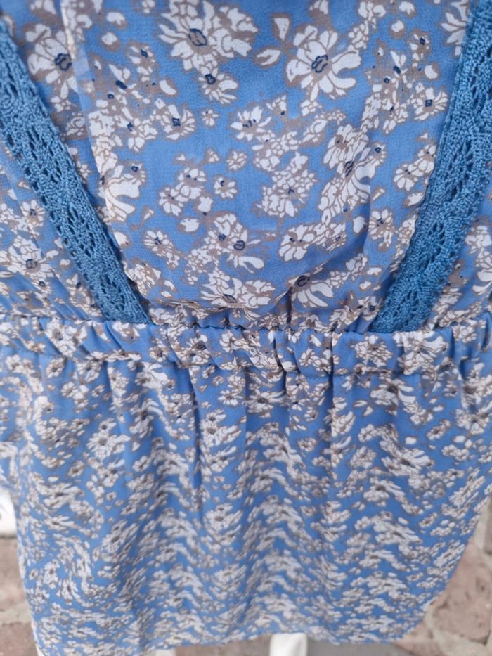 Jolie robe bustier neuve avec des bretelles qui se règlent facilement. Sur le bustier plusieurs rangs de dentelle bleu. Légèrement élastique à la taille. Deux poches latérales. 👗 Robe entièrement doublée. #ellaben_robes