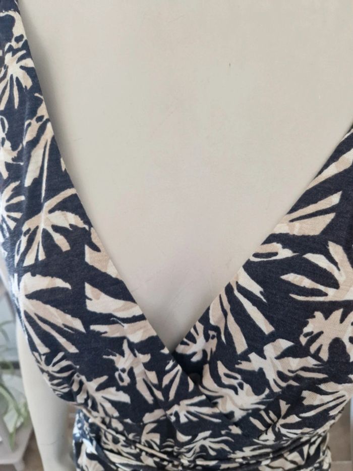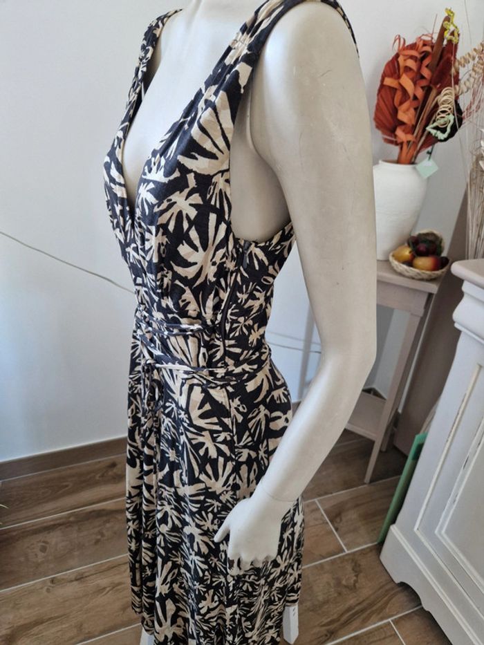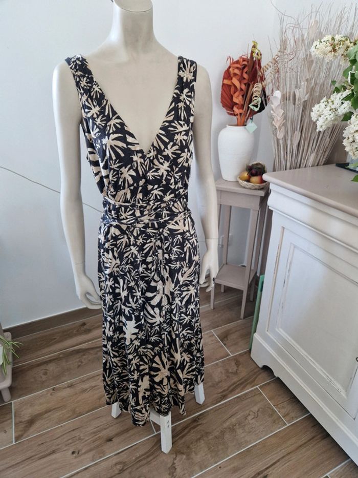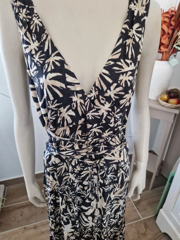 Jolie longue Betty Barclay avec un Joli décolleté en V devant et derrière. Fermeture éclair invisible sur le côté. Lacet au niveau de la taille. Ribeb100% viscose Robe fluide et agréable pour l'été. #ellaben_robes