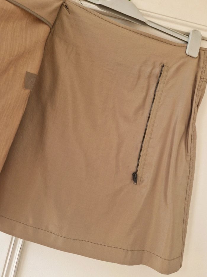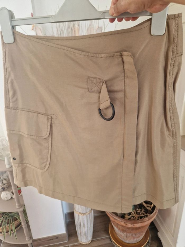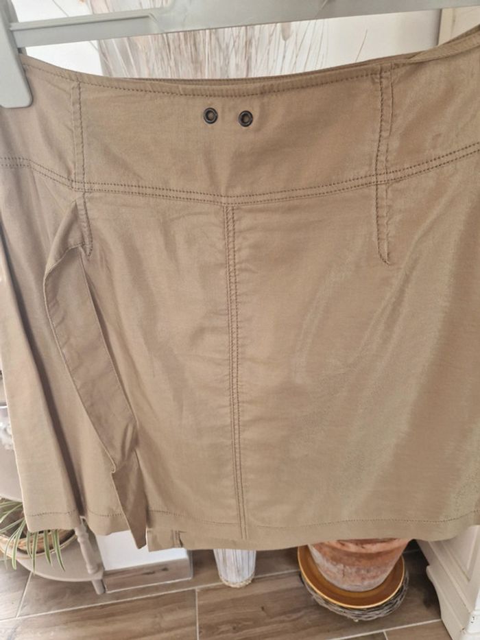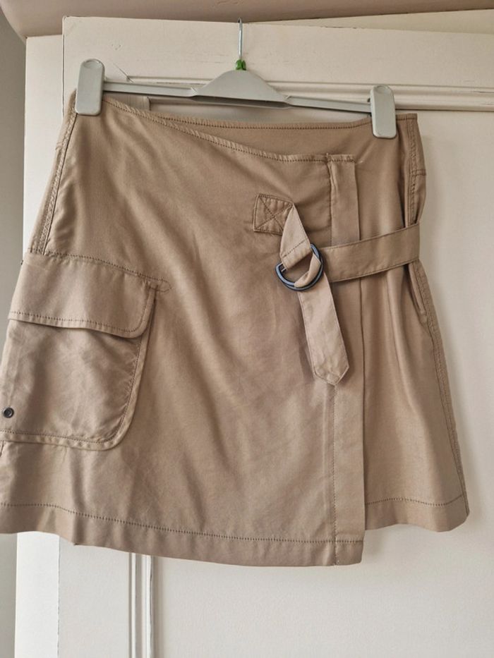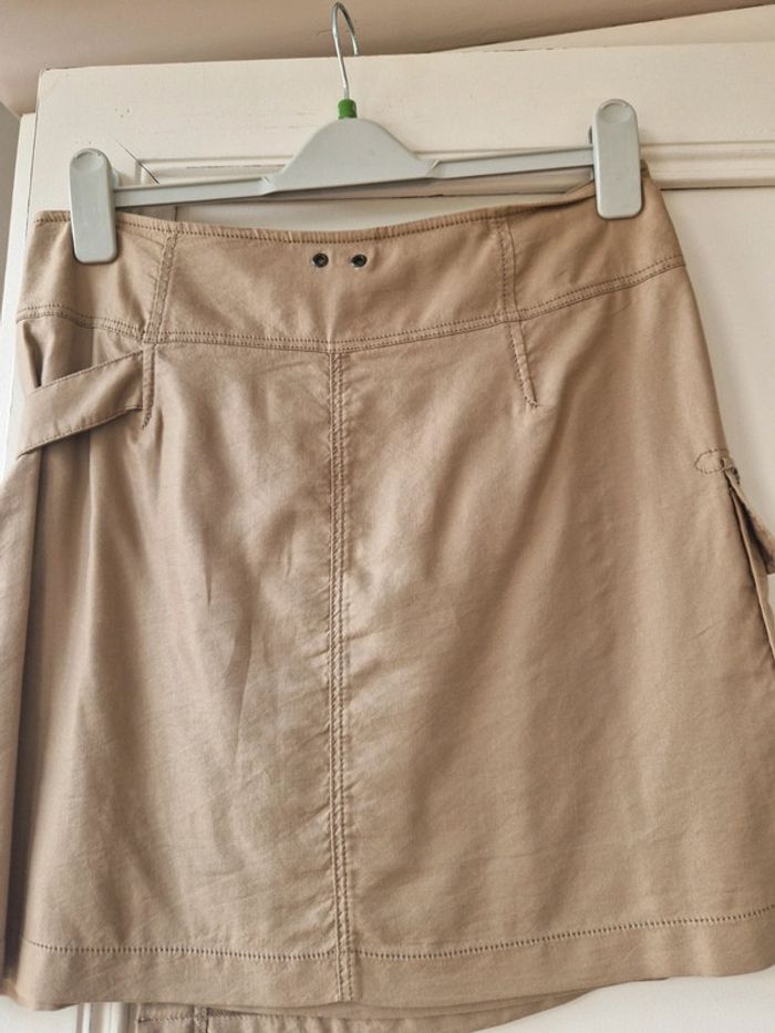 Jolie jupe courte de la marque IKKS. Jupe mi porte feuille avec une fermeture éclair invisible et un bouton sur la partie avant de la jupe. Grande poche avec un rabat sur le côté. Petite ceinture sur le haut. Original et jolie pour toutes occasions. #ellaben_jupes