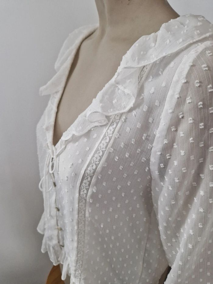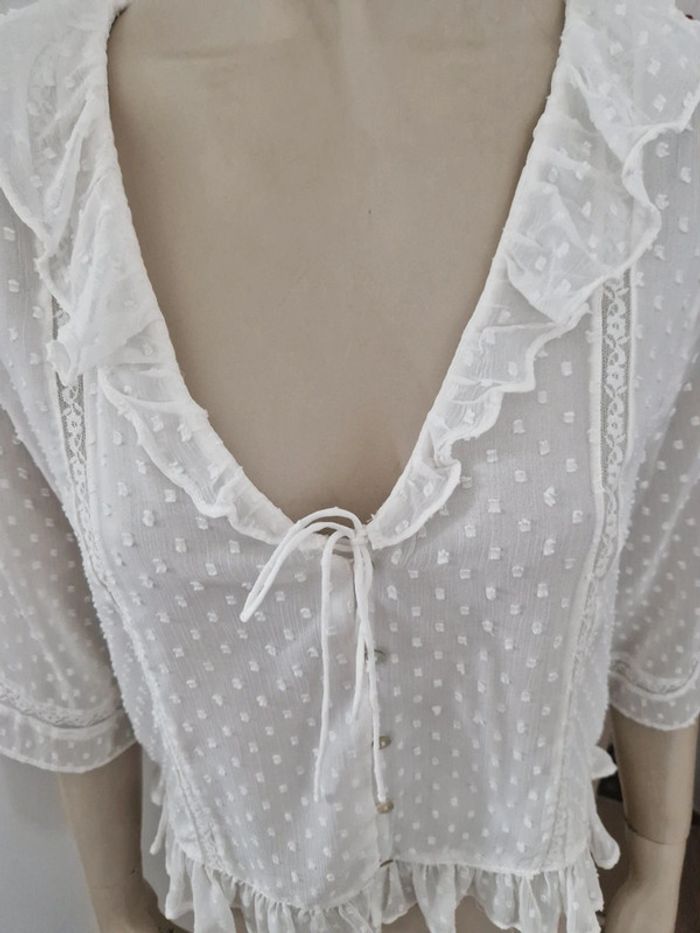 Lot de deux articles printanier. Une blouse blanche Zara en plumetis légère avec dentelle.Manches trois quarts. Décolleté arrondie avec une rangée de boutons et un cordon à la poitrine. Entièrement doublée. Blouse Camaieu de couleurs grenats avec broderies à la poitrine et sur les épaules. Manches courtes. Élastique à la taille Les deux articles taille M. #ellaben_blousesfemmes