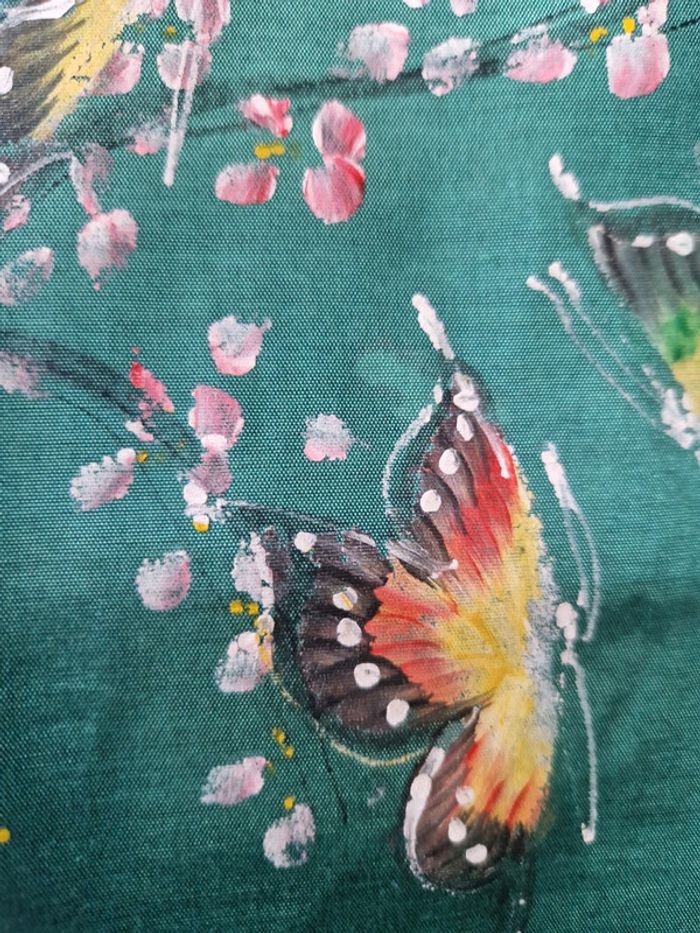Joli debardeur en soie sauvage made in ThaĂŻlande. Superbe dessin avec des oiseaux de toutes les couleurs. Taille 38/ 40 #ellaben_blousesfemmes