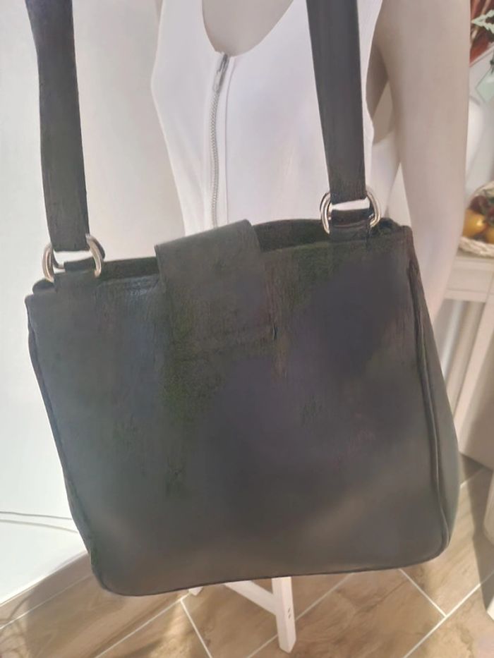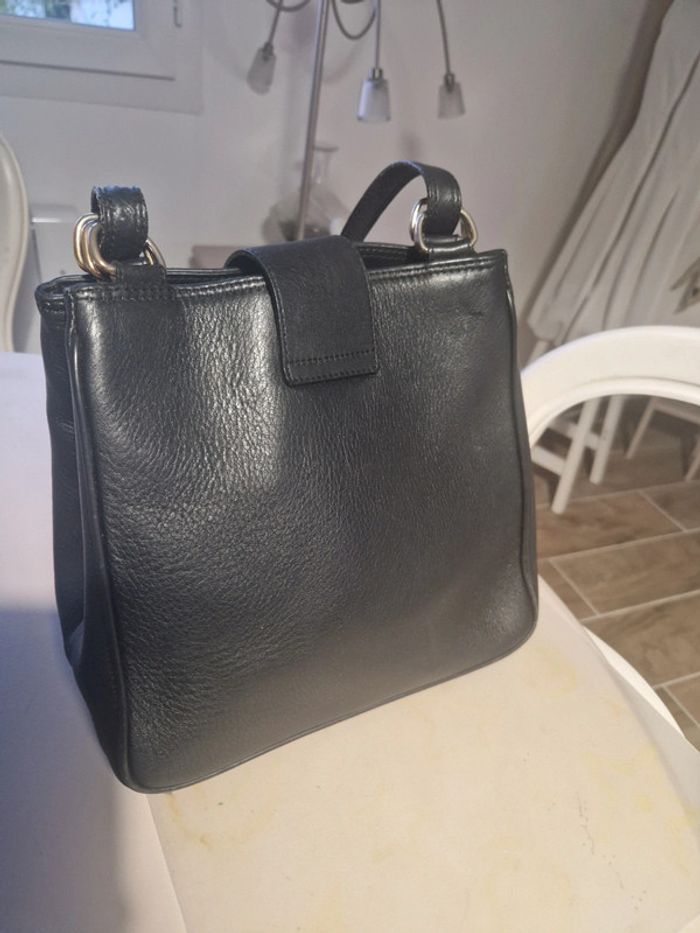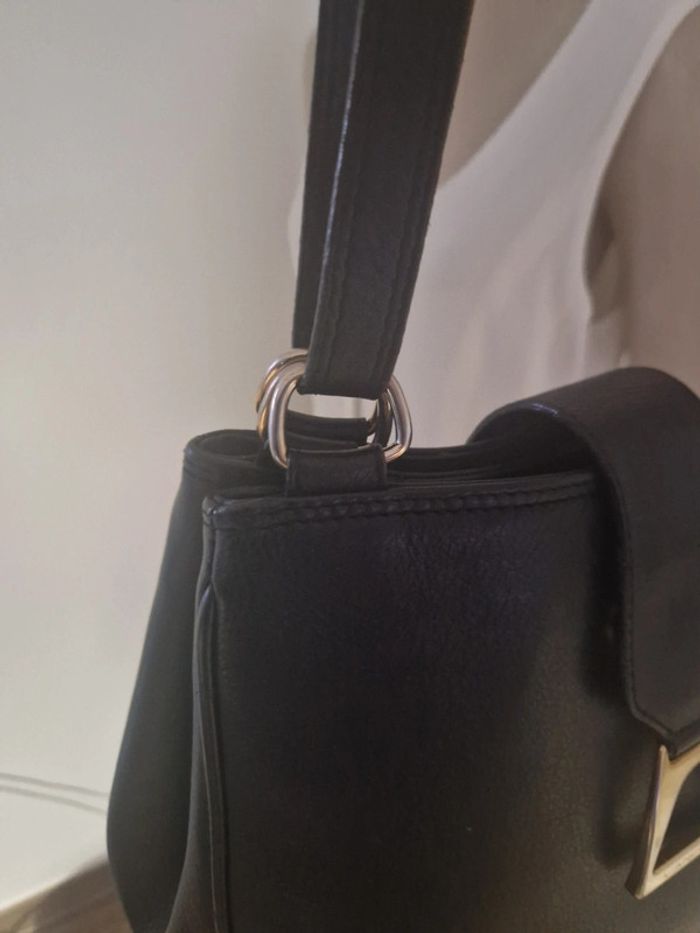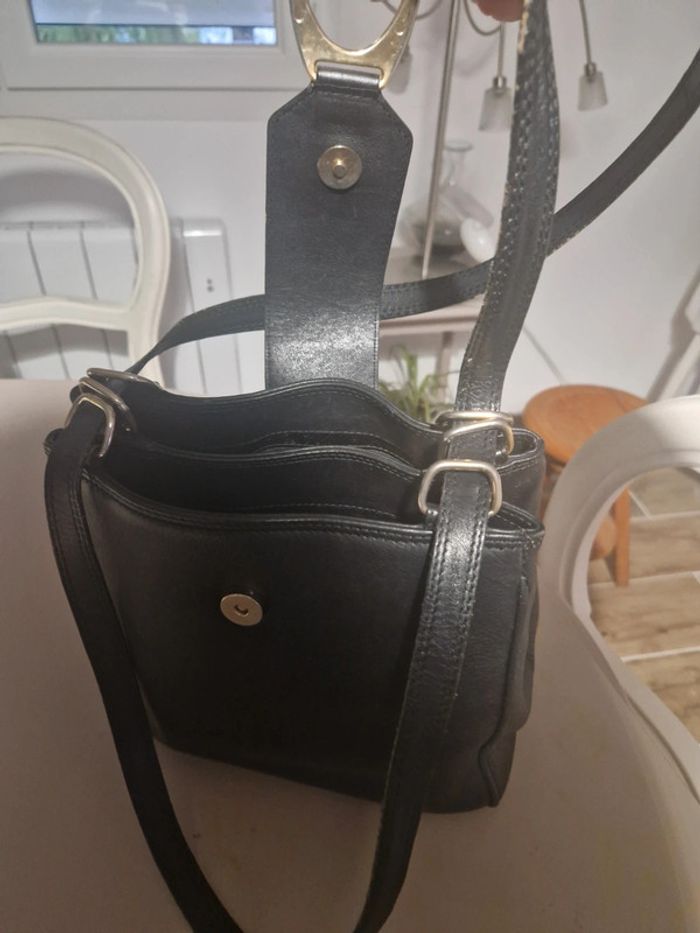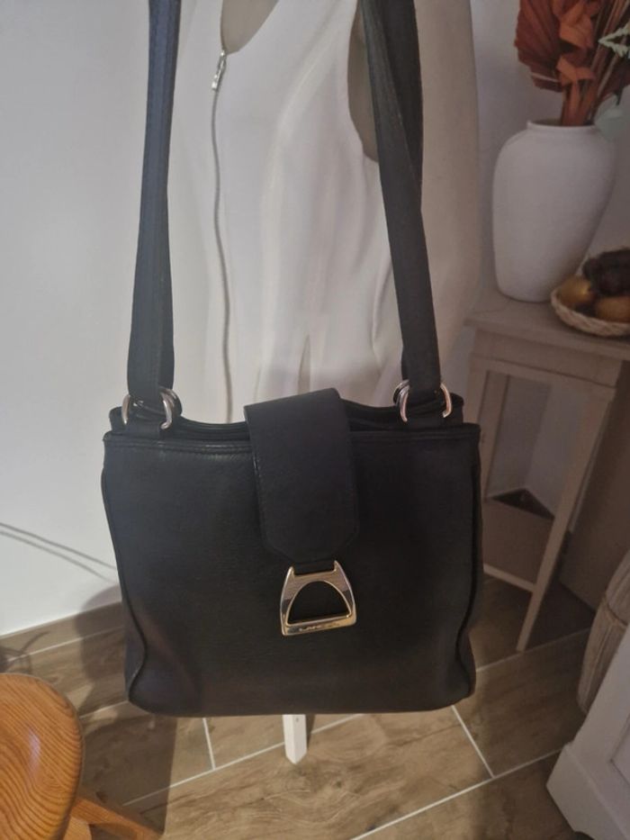 Joli sac en cuir Lancel vintage des années 1990. Deux positions possibles pour les anses, le sac se porte donc à l’épaule ou plus long. Bijouterie en métal doré légèrement patiné. Signée Lancel sur la grande boucle et à l’intérieur. Très belle pièce classique et intemporelle..
