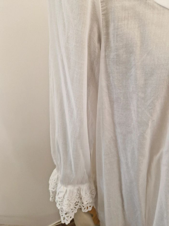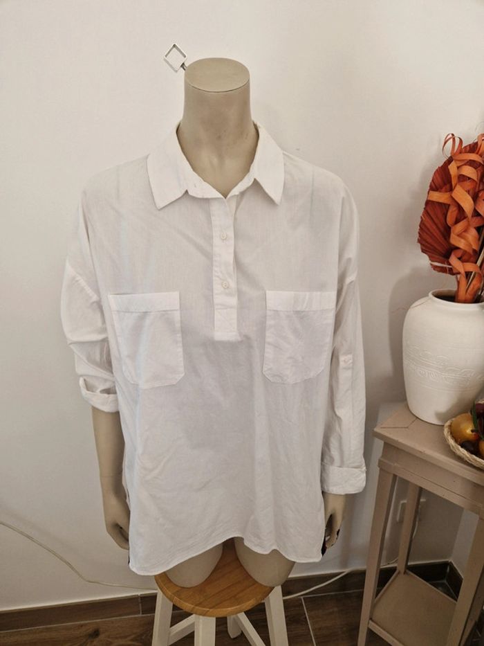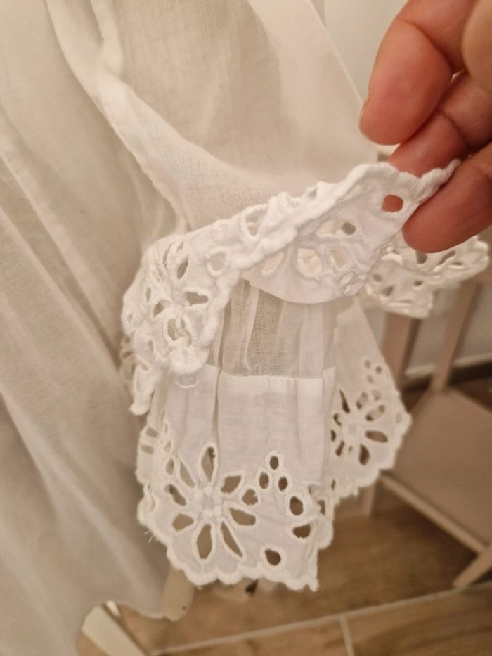 Lot de blouses Zara La première blouse Zara col arrondi avec des manches qui se terminent par deux rangées de dentelle très jolie . Nlous très légère et légère. Seconde blouse Zara. Blouse manches longues qui se retroussent facilement grâce à une pâte et un bouton. Petite rangée de boutons à l'encolure avec deux poches a la poitrine. Chemise/blouse avec deux fentes de couleurs de chaques côté. Bouton de rechange cousu sur l'étiquette. Deux beaux articles Zara pour agrémenter votre garde robe 👗 #ellaben_blousesfemmes #ellaben_chemisefemme #ellaben_articleszara #ellaben_blanc